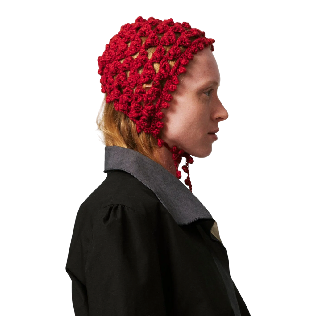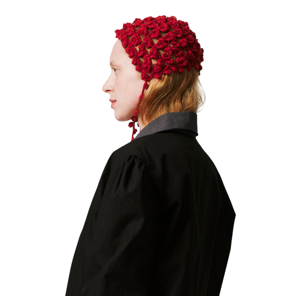 Handcrafted in our Madrid studio, this crochet bonnet features a floral-inspired textured pattern on the back. Made from a premium King Cole fiber blend, it is soft, durable, and designed for everyday comfort.