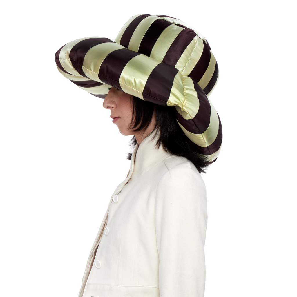 Angelfish Striped Satin Hat — Pale Yellow/Aubergine