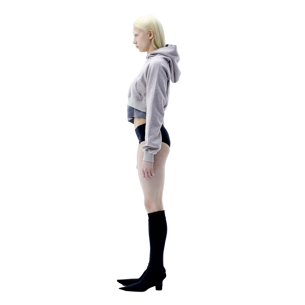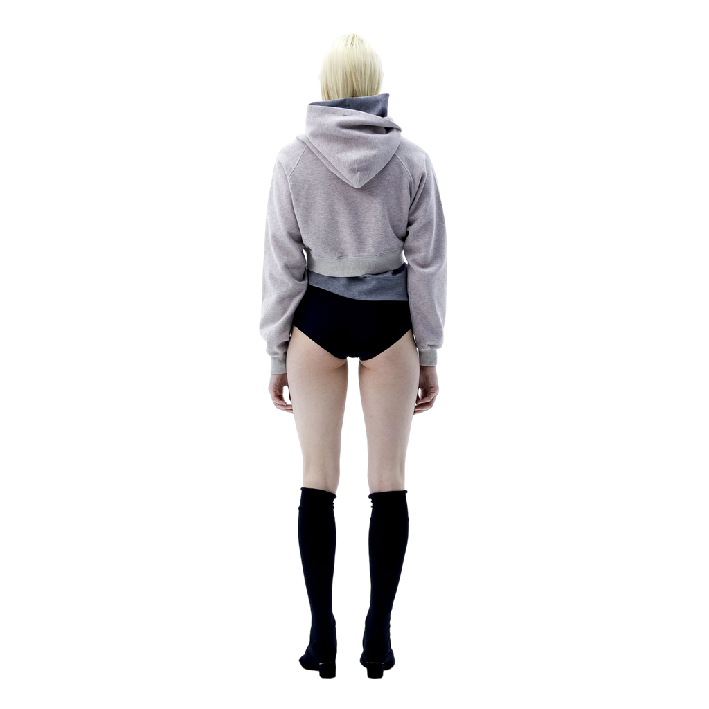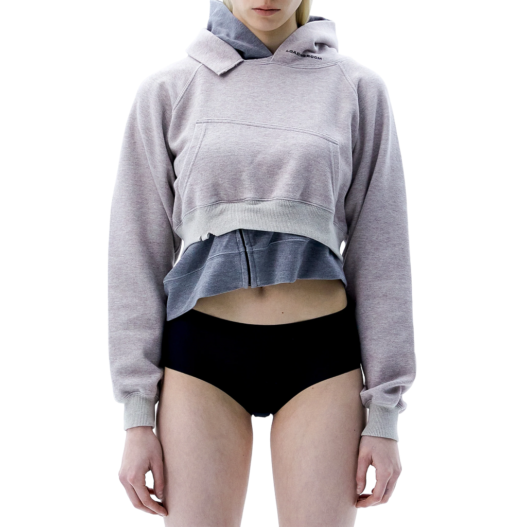 This hoodie combines two different materials for a unique look and feel. It offers a medium fit and features hoods without drawstrings for a sleek appearance. The hoodie includes an asymmetric zipper on the inside layer, adding a modern touch to the design. It is mineral washed for a soft, worn-in feel. The left neck is adorned with a logo print for subtle branding. The hoodie also features an unbalanced front pocket, adding a dynamic element to the overall look.