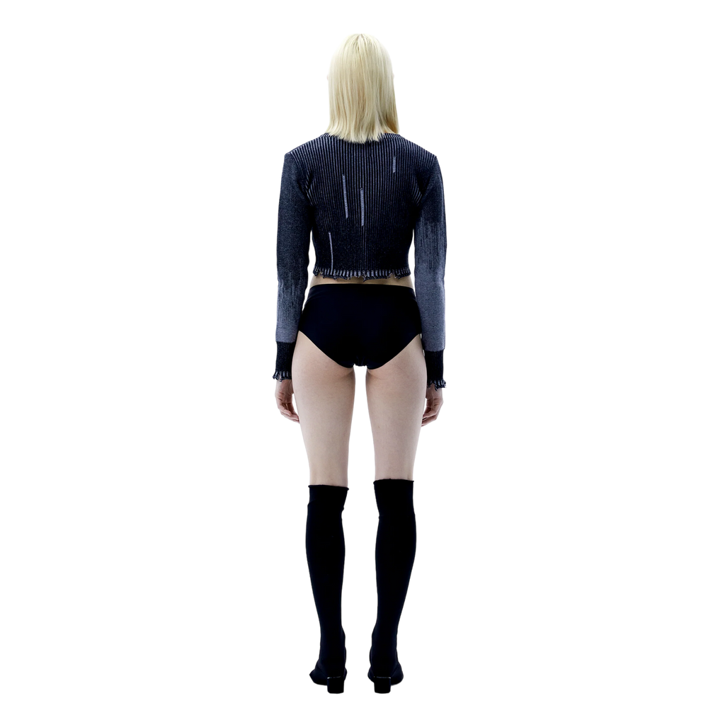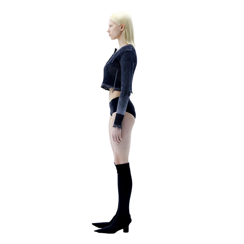 Crafted from cotton ribbed knit, our slim-fit sweater features an unbalanced bird's eye effect at the armpart for a modern look. It includes a cutting effect at the waist and ribbed cuffs for added style. The sweater is designed with four buttons at the front for easy wear and a touch of sophistication.