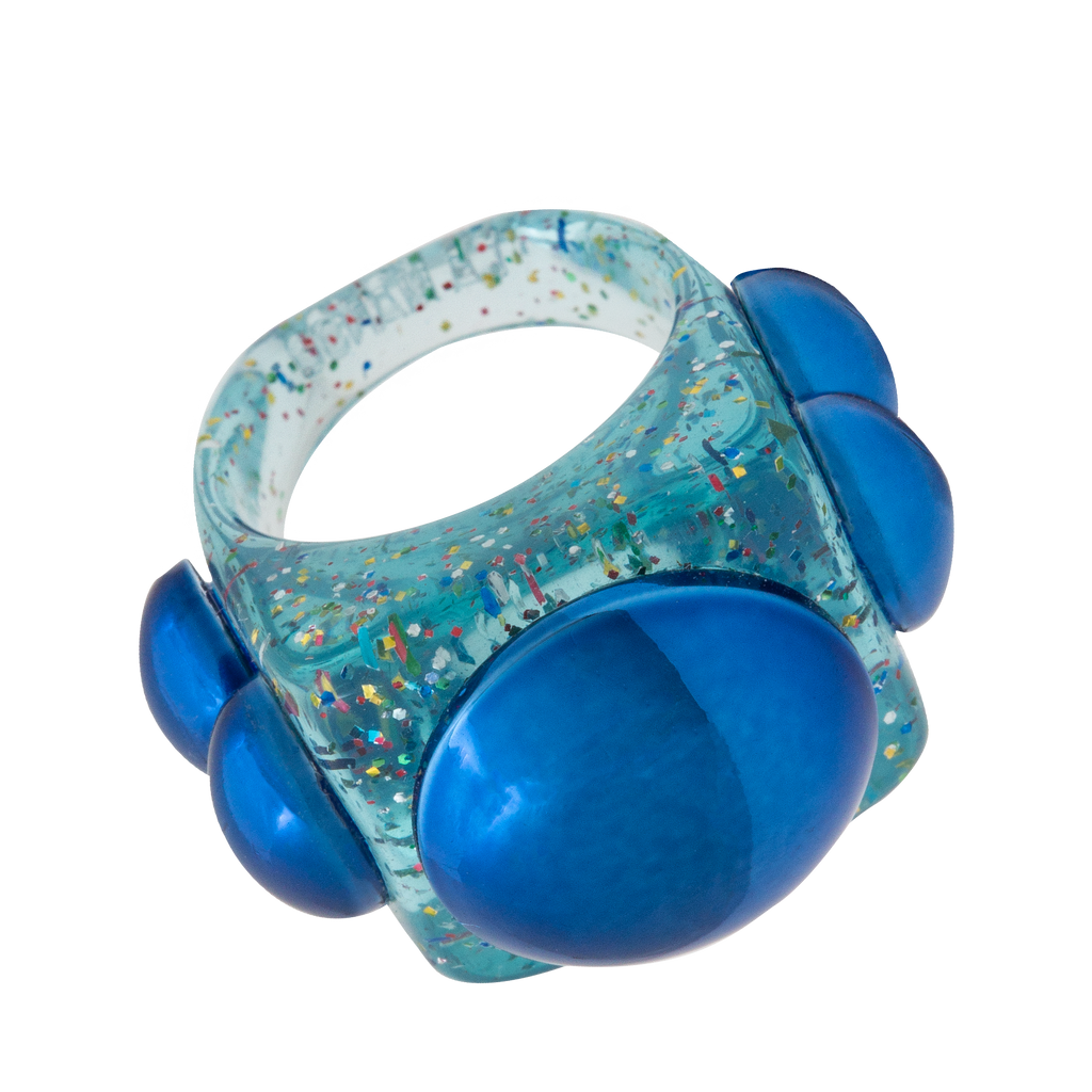Material: Gypsy fluor blue oval, fluor blue circle on a base of a glittery blue square ring.