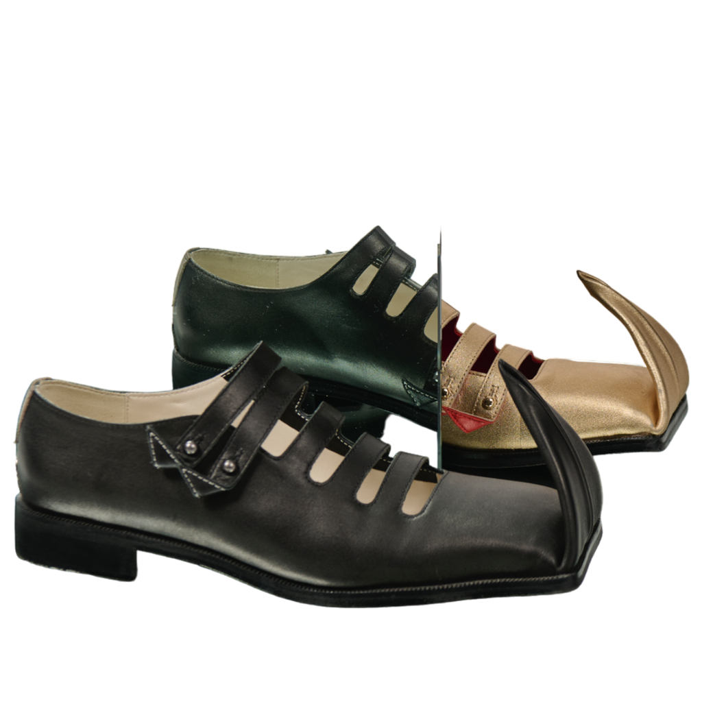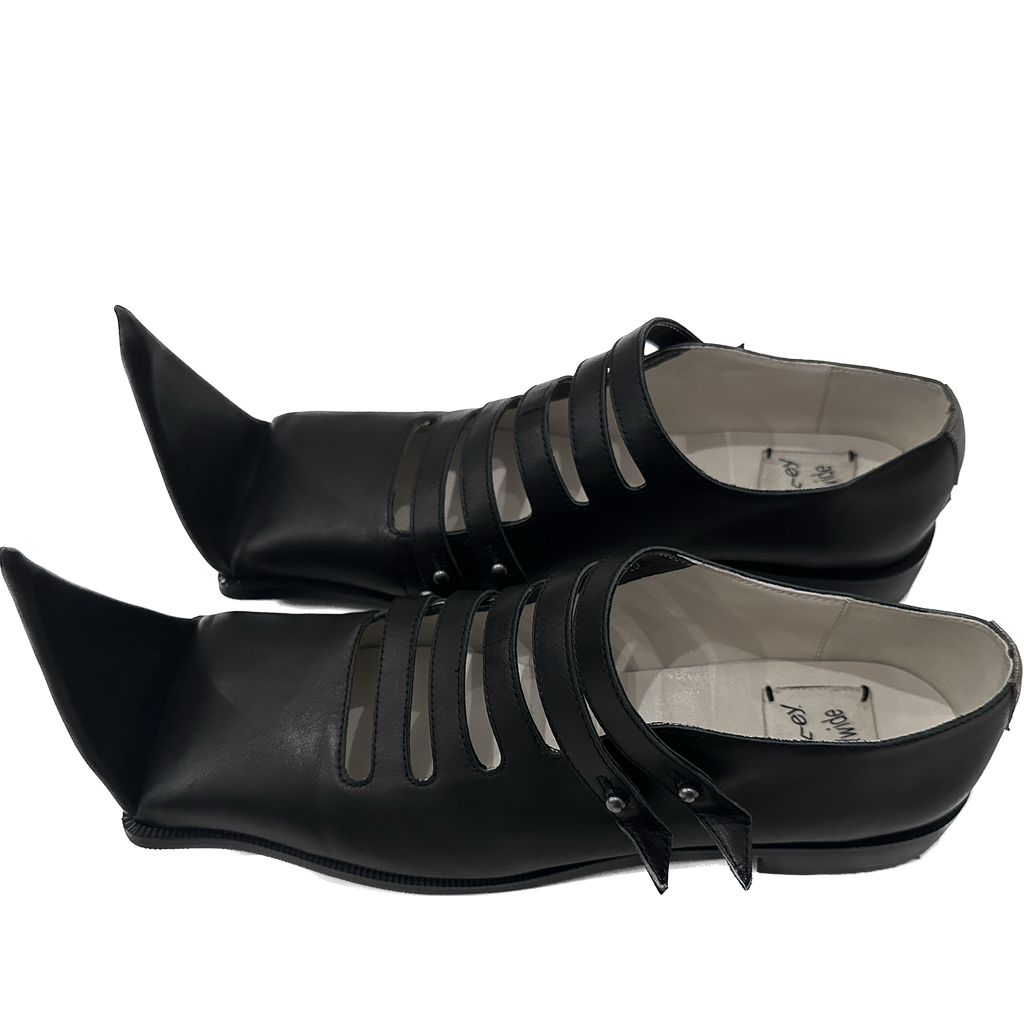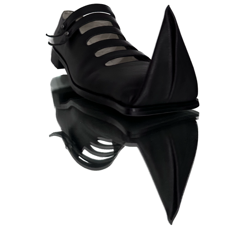 Step into playful sophistication with our Folded Poulaines in mysterious black! Crafted from a dance of calfskin and sheepskin, these kicks are not just shoes—they're a leather love affair. The rubber sole? It's your dance partner on the journey of style and comfort!