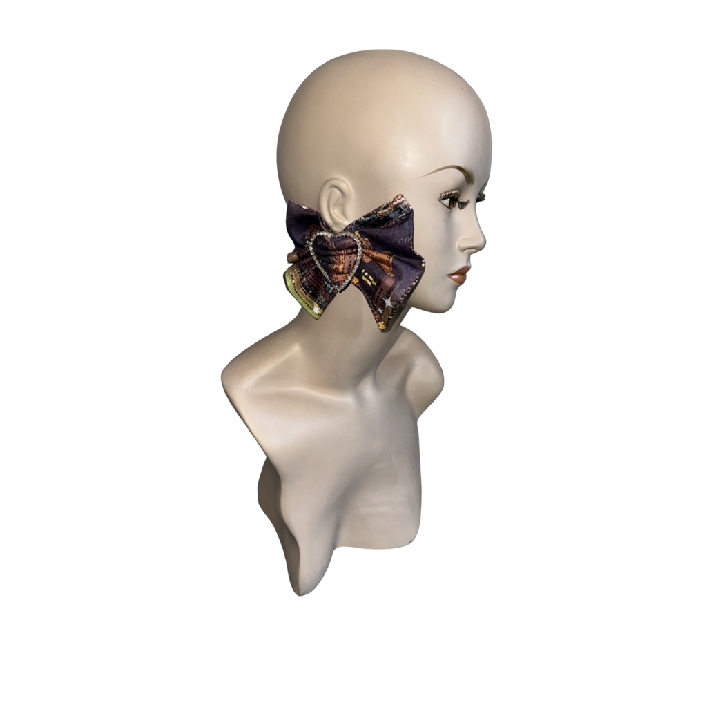 Material: Bow (Denim Fabric from Deadstock/Old Tee), Earring Base (Stud Earrings in Sterling Silver), Accessories ( Brass & Crystal Decoration)