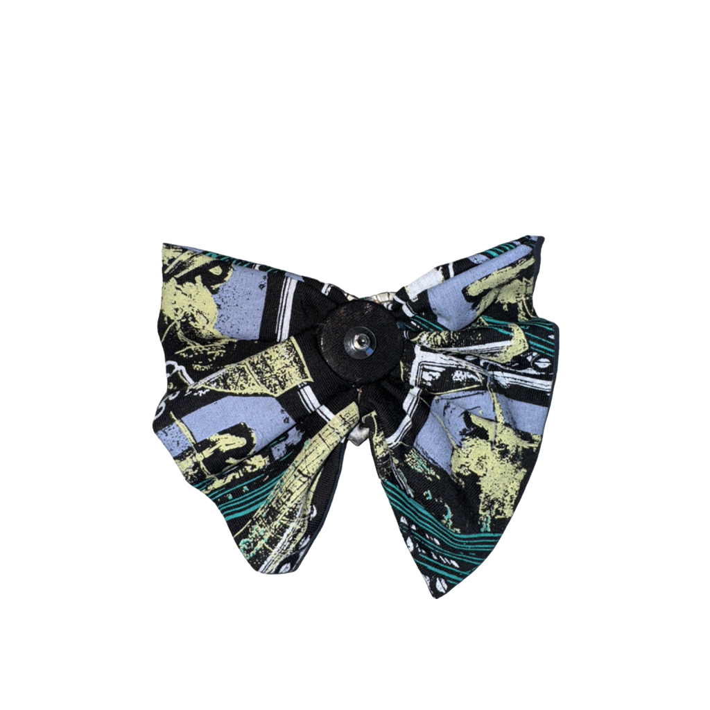 Material: Bow (Denim Fabric from Deadstock/Old Tee), Earring Base (Stud Earrings in Sterling Silver), Accessories ( Brass & Crystal Decoration)