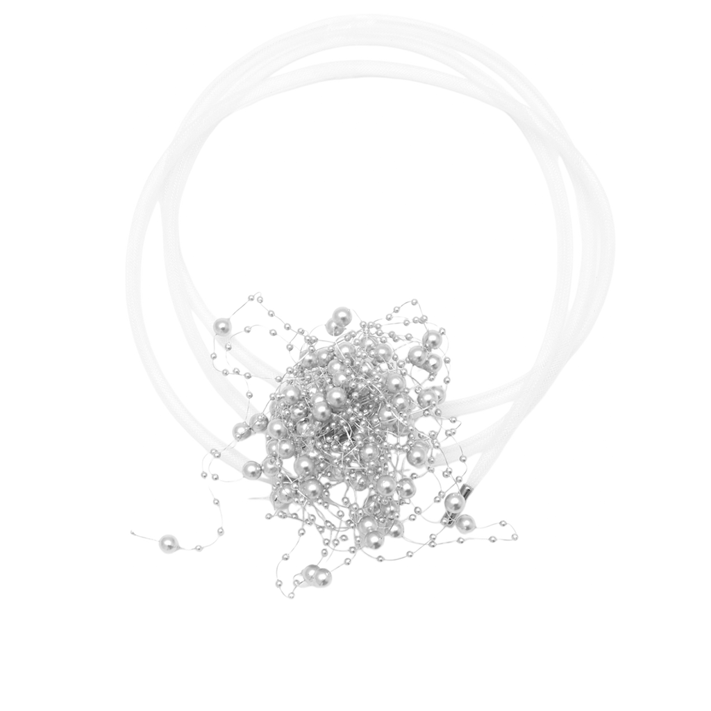 Featuring large and small ABS pompom balls, the necklace is mounted on a durable nylon cord with a light-coated brass backing. The "1" logo is elegantly engraved on the back for a signature finish.