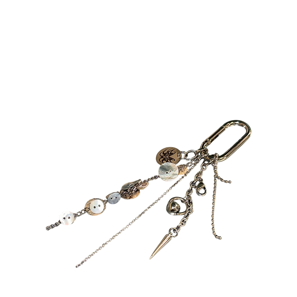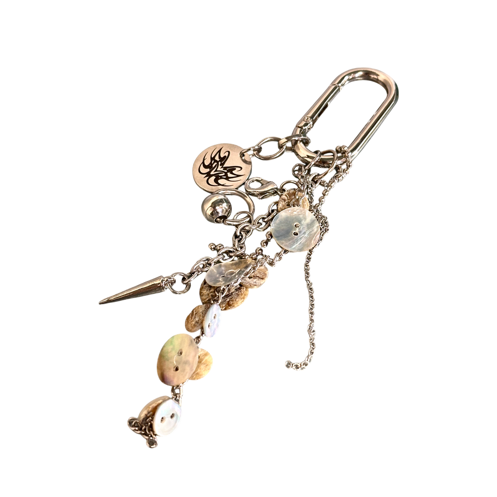 Alisa Cayoo’s “Button keychain” is an accessory made from upcycled vintage chains and pearl buttons. Handmade in Paris, a bold mix of vintage style and punk vibes.