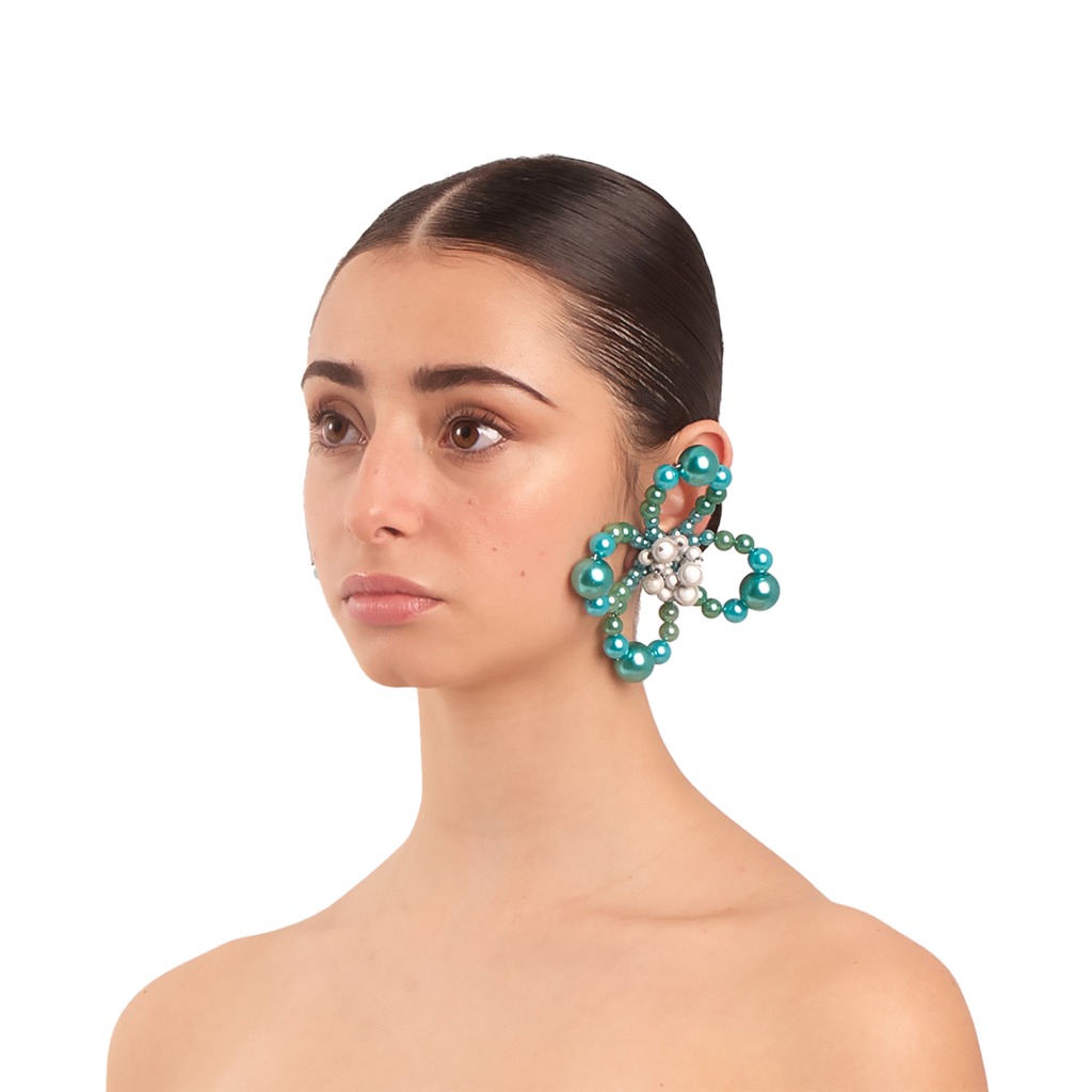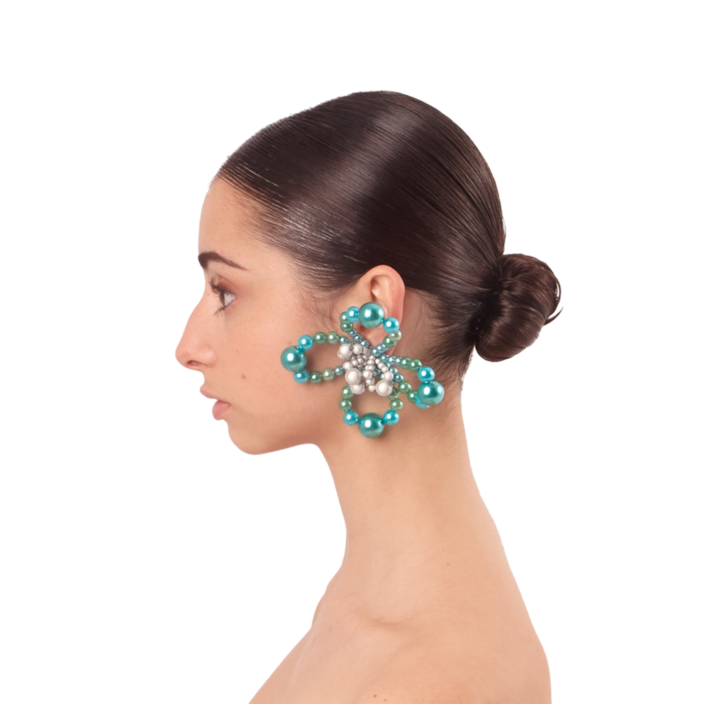 Crafted from 3D printed ABS resin, these earrings feature an ABS plastic perlated ball on top, complemented by a pink glazed brass back with clasp. The debossed '1CONCEPT' logo adds a subtle touch, while the embossed '1' logo on the back adds a unique flair. Handglazed for a polished finish.