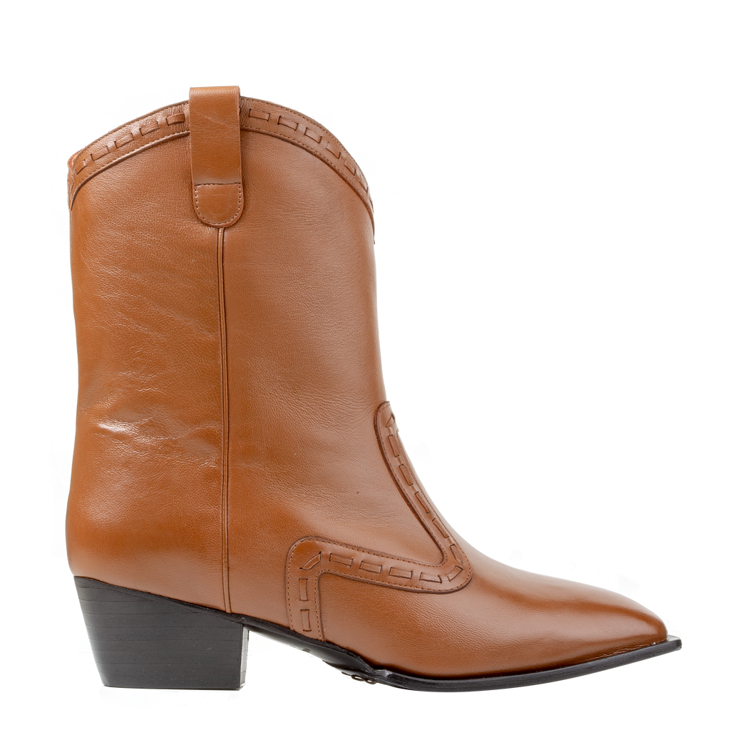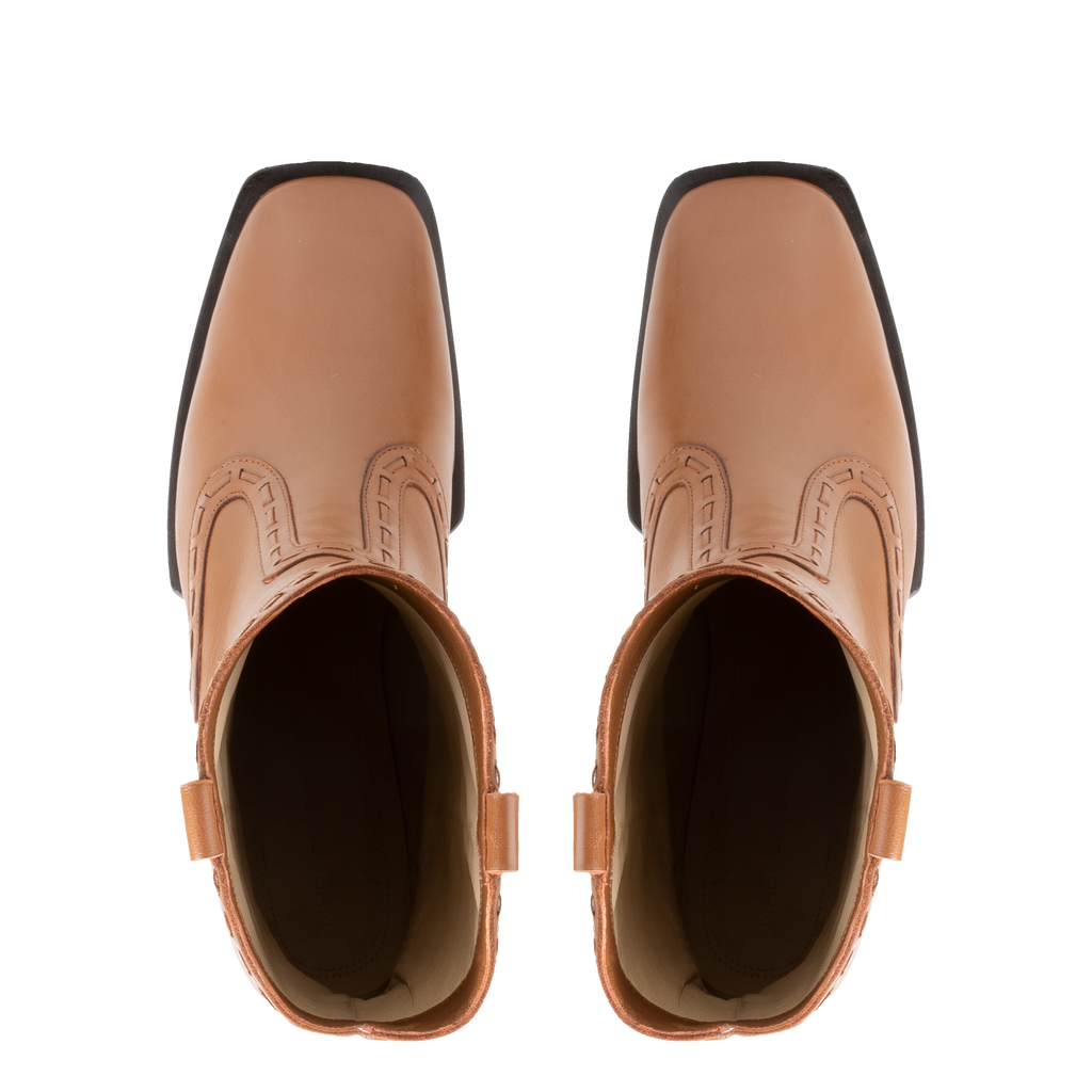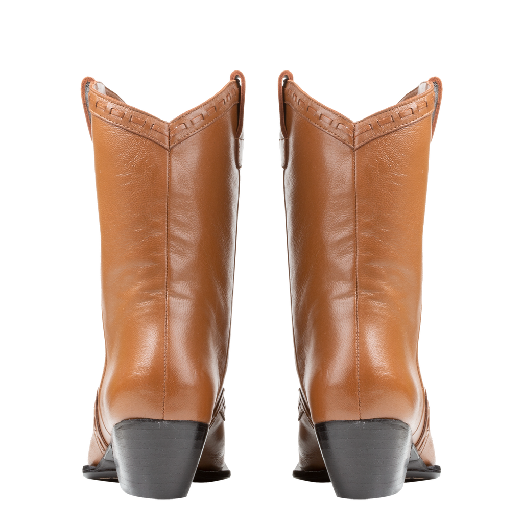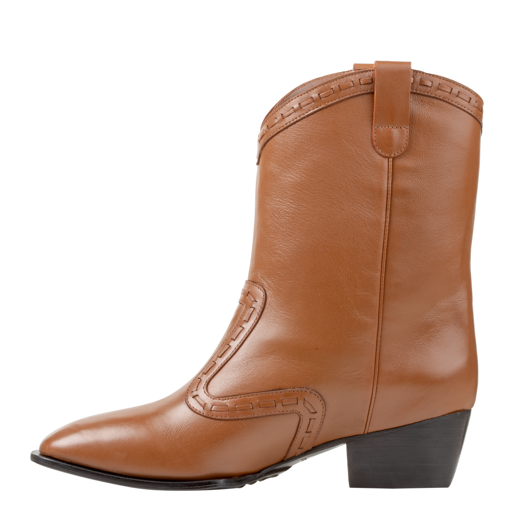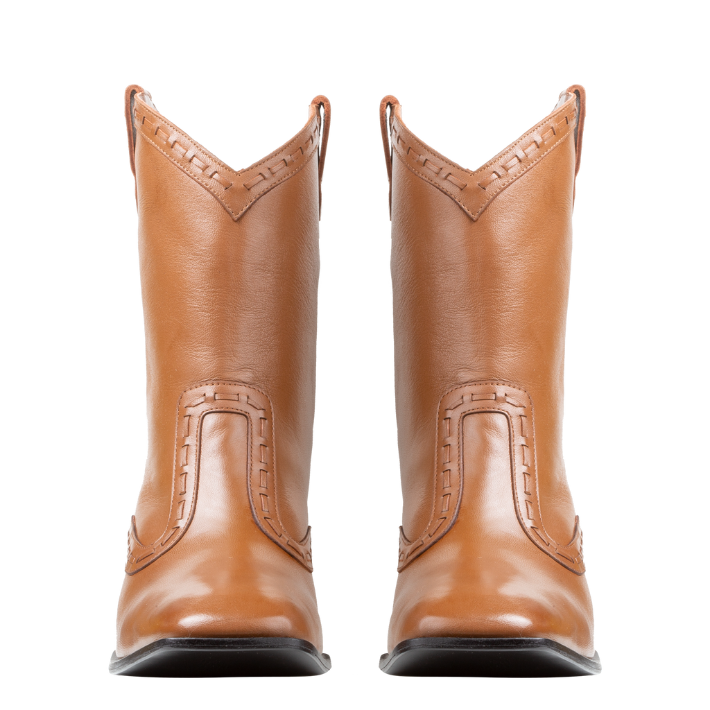 Suela calfskin with tonal stitching, square toe, leather Lining and leather sole. Fits true to size. Approx. 2" wooden heel.