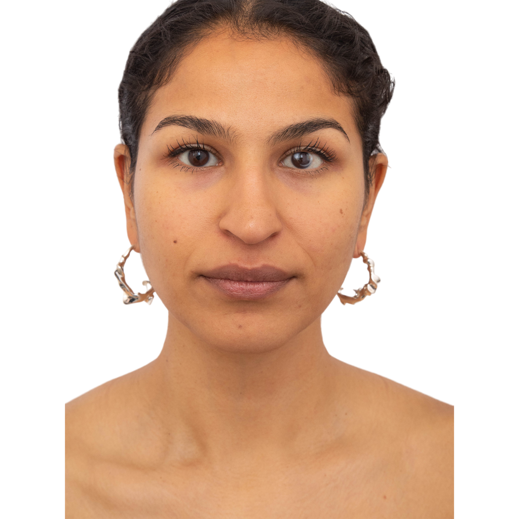 Freya Douglas Ferguson, a London-based sculptor and self-taught jeweler, blends her unique style, influenced by Biomorphism and sci-fi imagery. Collaborating with renowned designers and worn by artists like Caroline Polachek, her one-of-a-kind pieces are handmade in recycled sterling silver, emphasizing process and materiality.