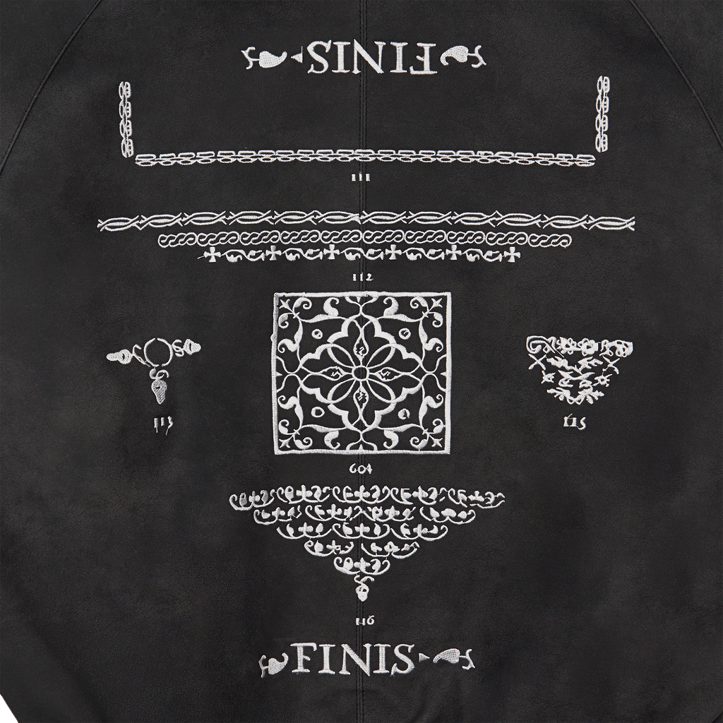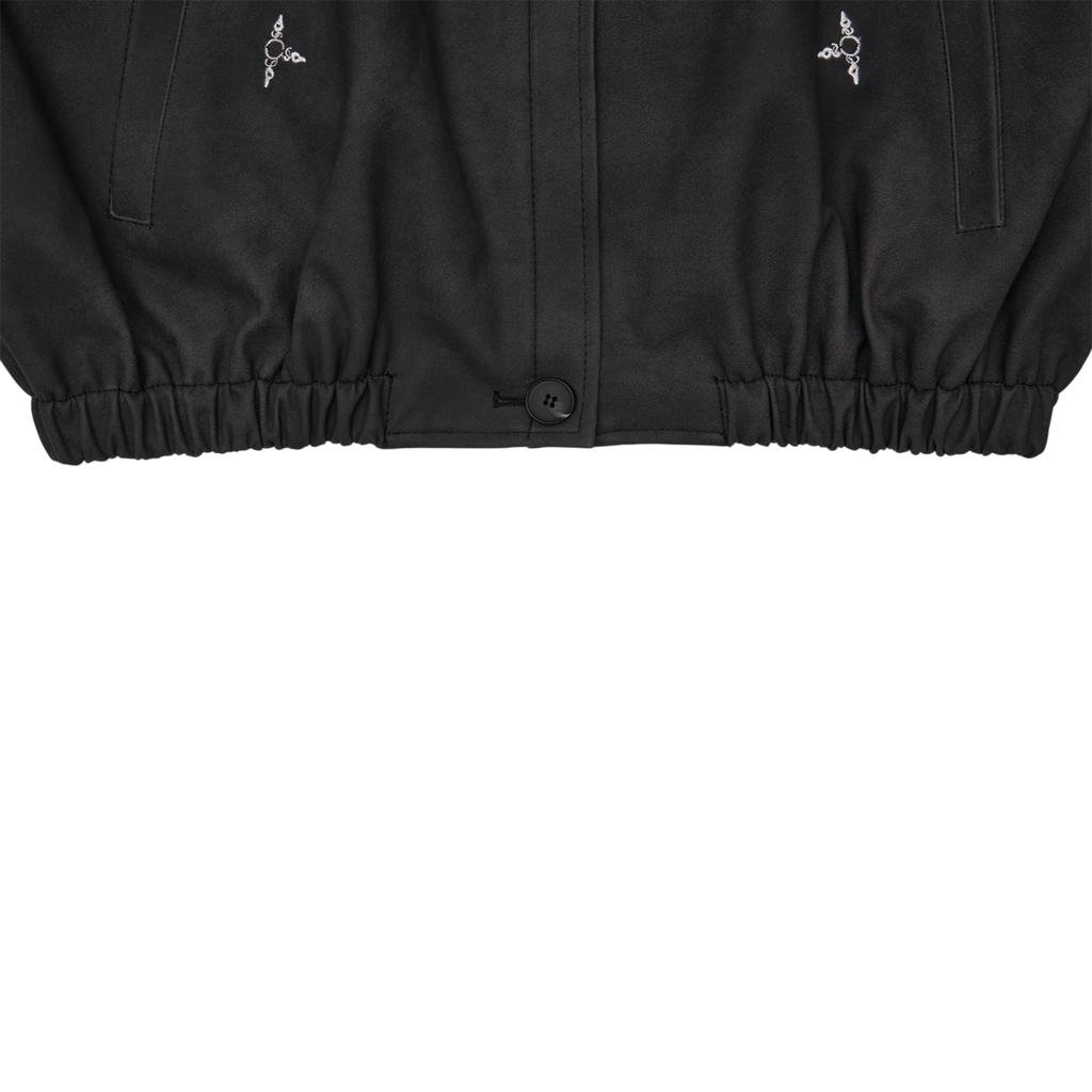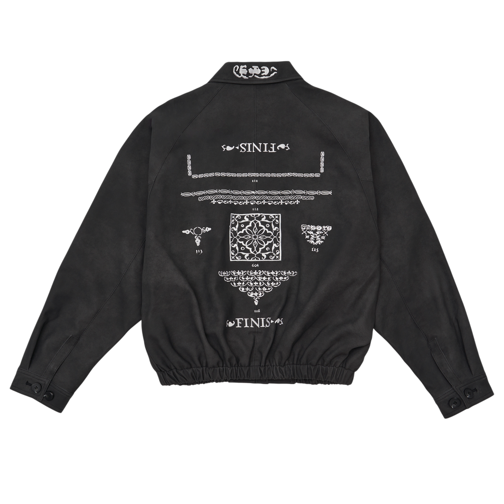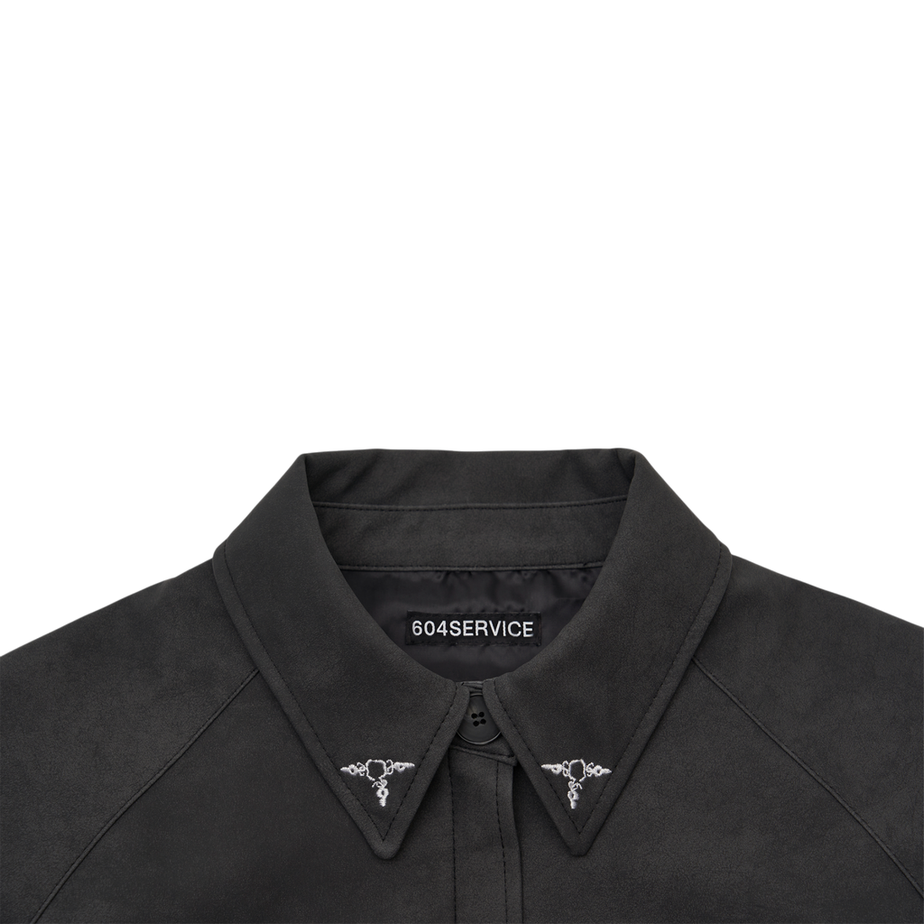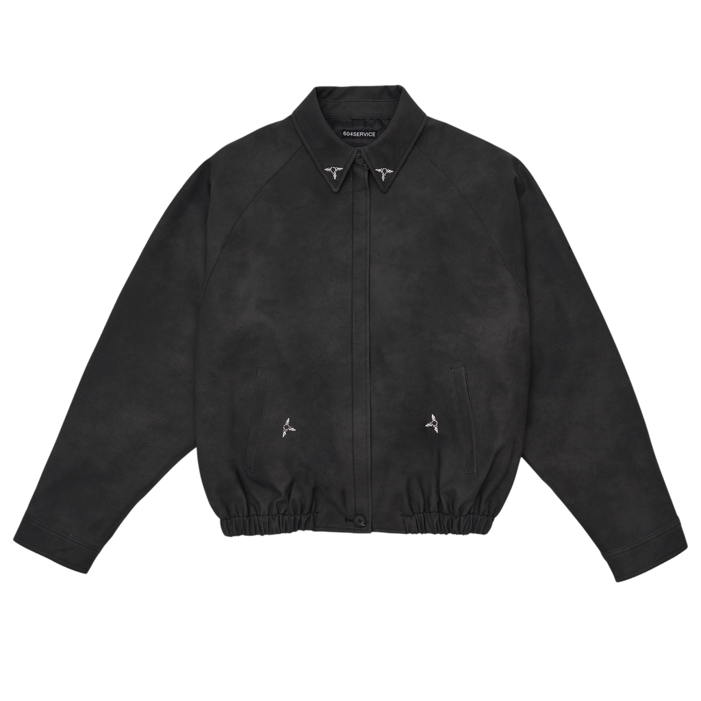 It showcases 604SERVICE’s signature style with intricate embroidered graphics, and comes in an oversized fit. The tight waistband provides just the right amount of structure, ensuring a perfect fit. Cuffs, collar details, and closure buttons complete the jacket's design.
