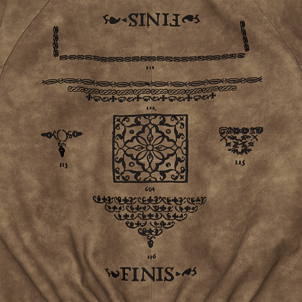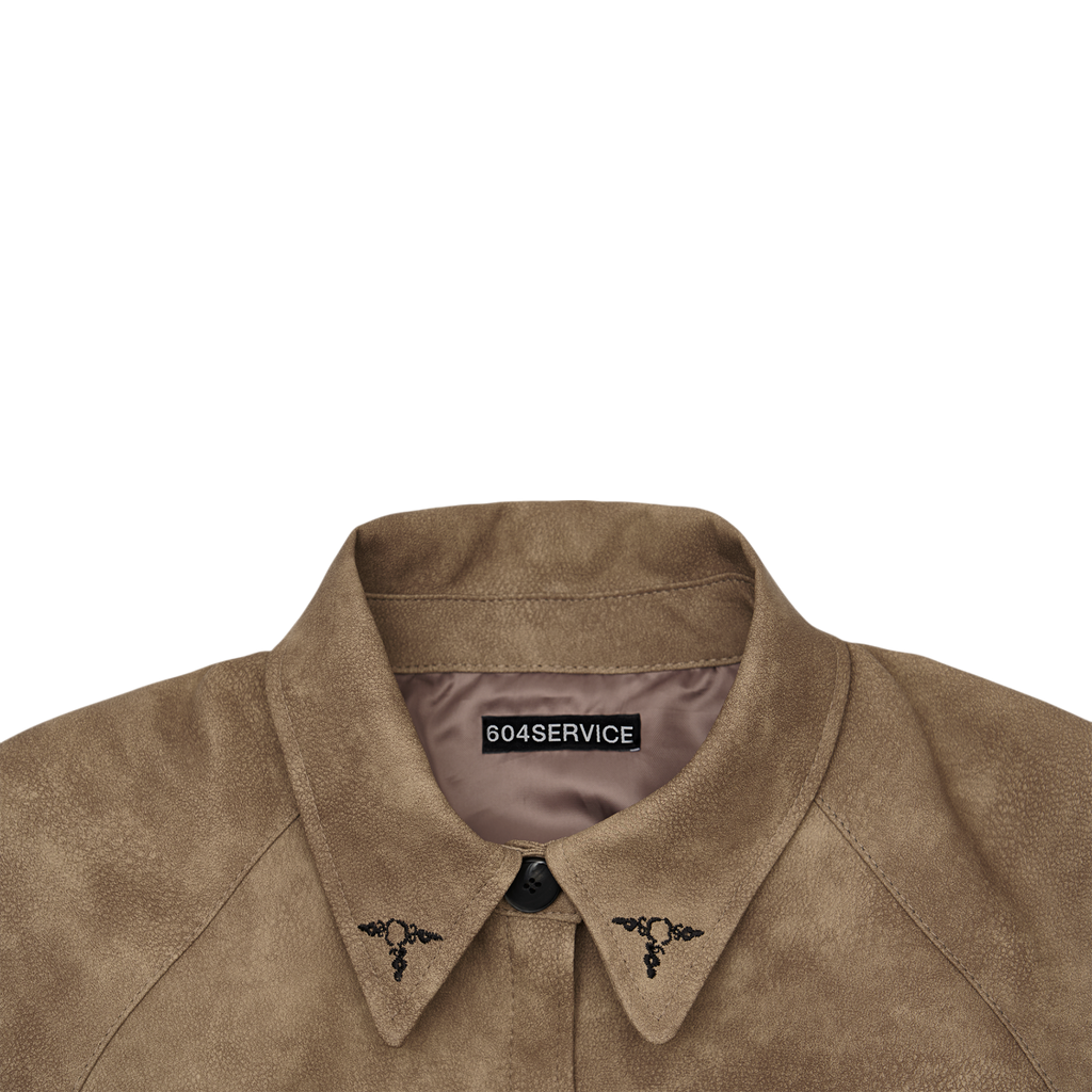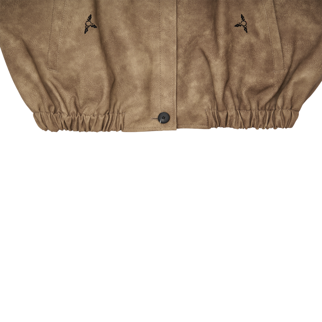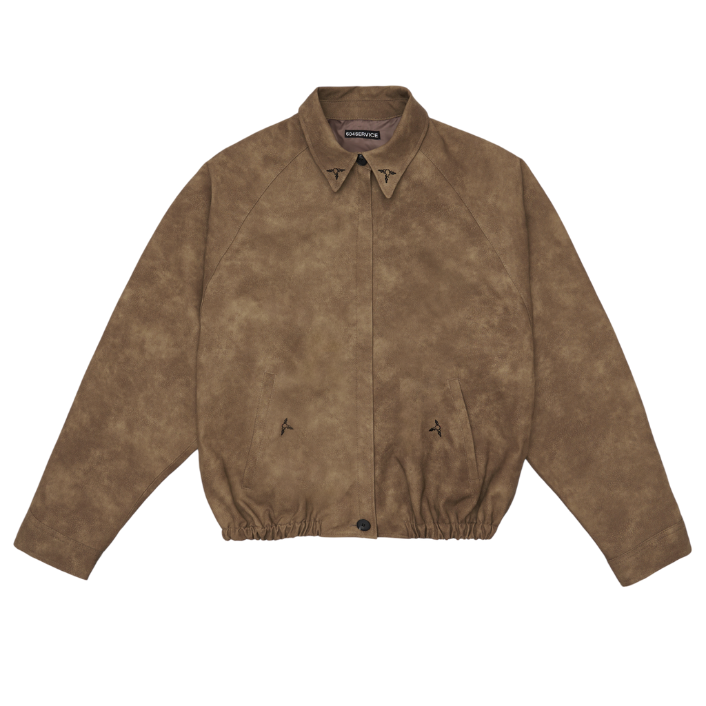 It showcases 604SERVICE’s signature style with intricate embroidered graphics, and comes in an oversized fit. The tight waistband provides just the right amount of structure, ensuring a perfect fit. Cuffs, collar details, and closure buttons complete the jacket's design.
