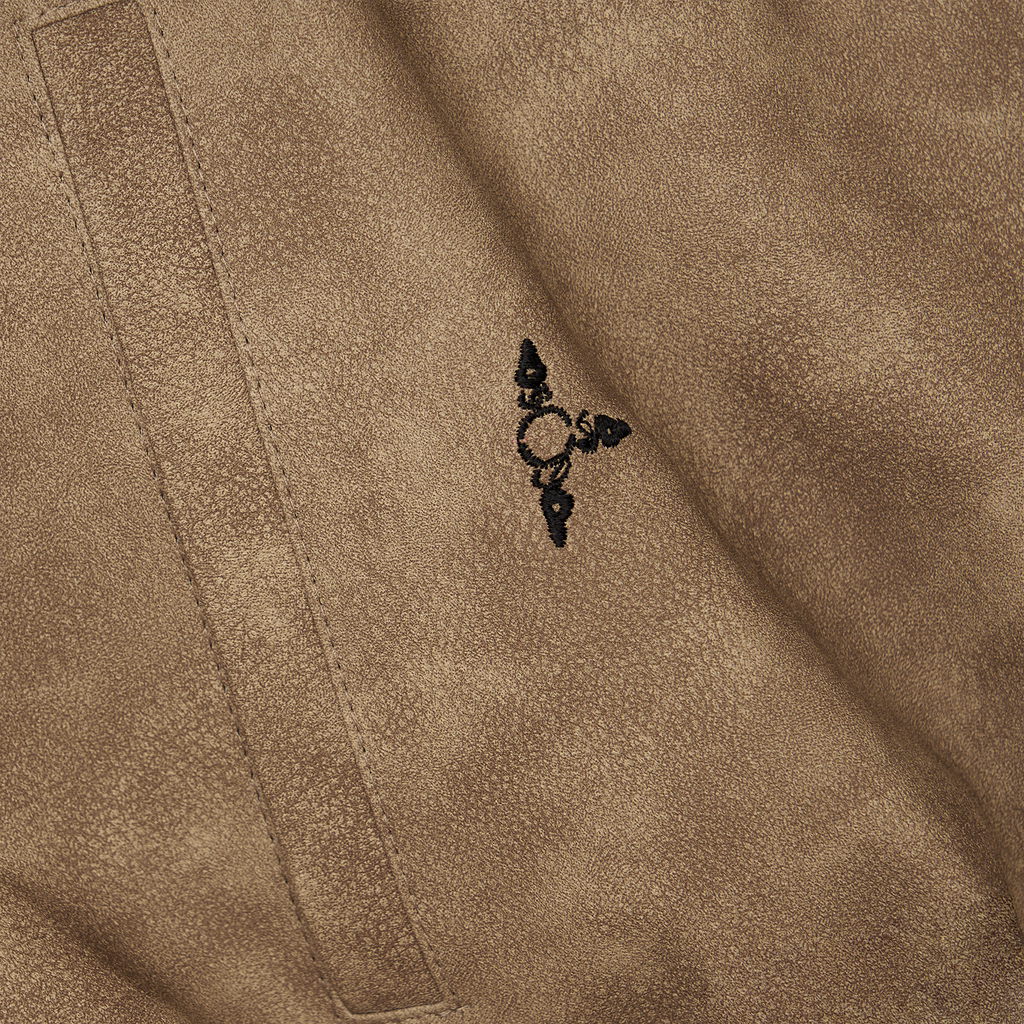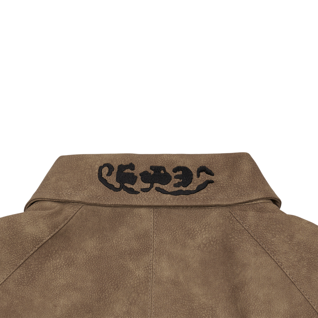 This unisex item is crafted from washed leather and features upgraded fabric for a more luxurious feel. Our best-selling embroidered leather jacket has been relaunched with these fabric enhancements, now offering a soft suede-like faux leather texture.