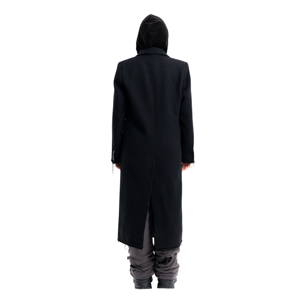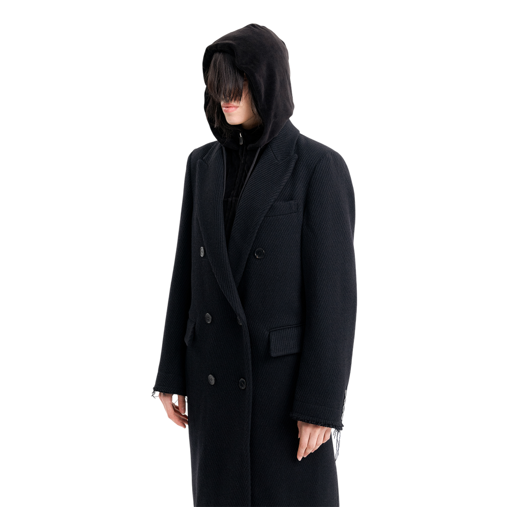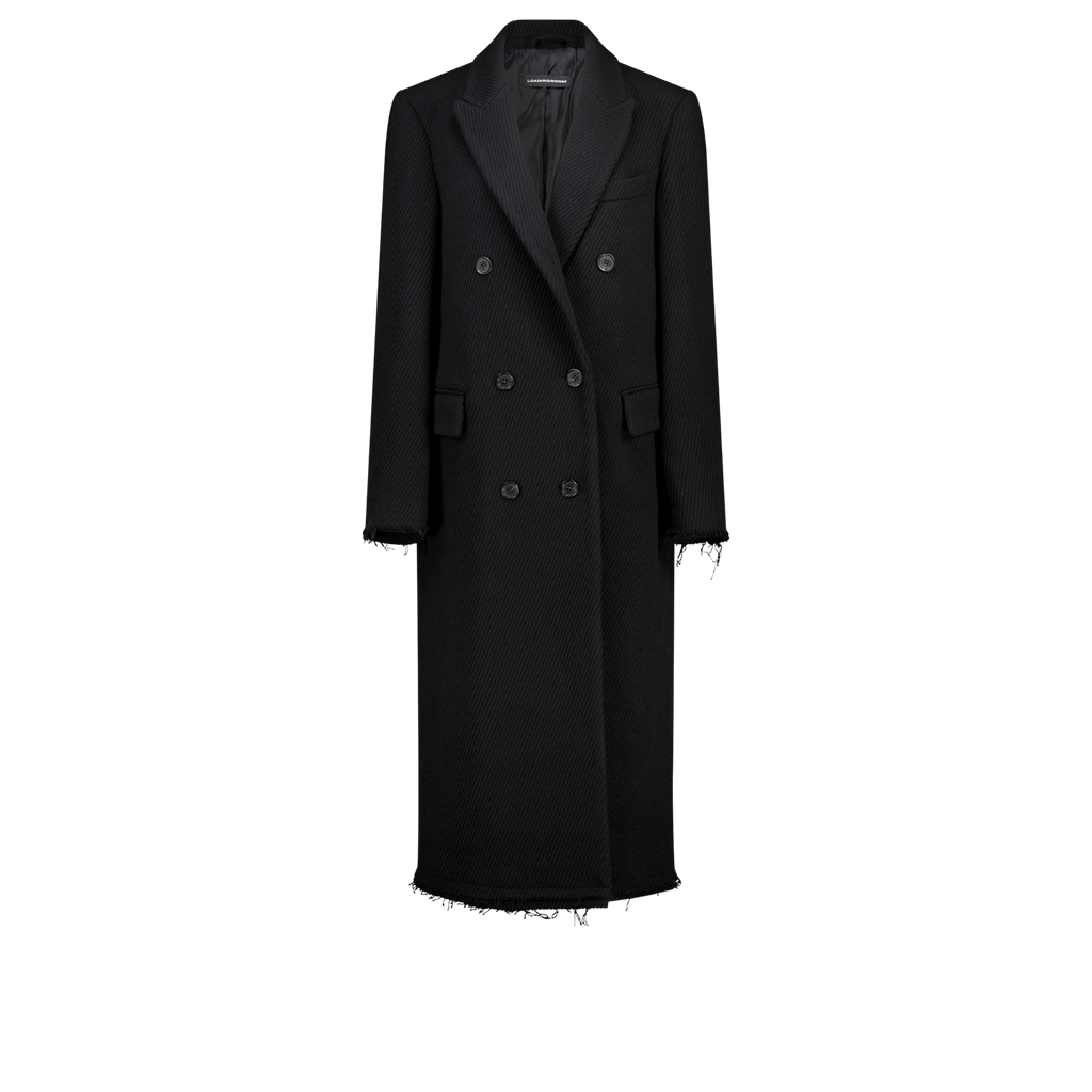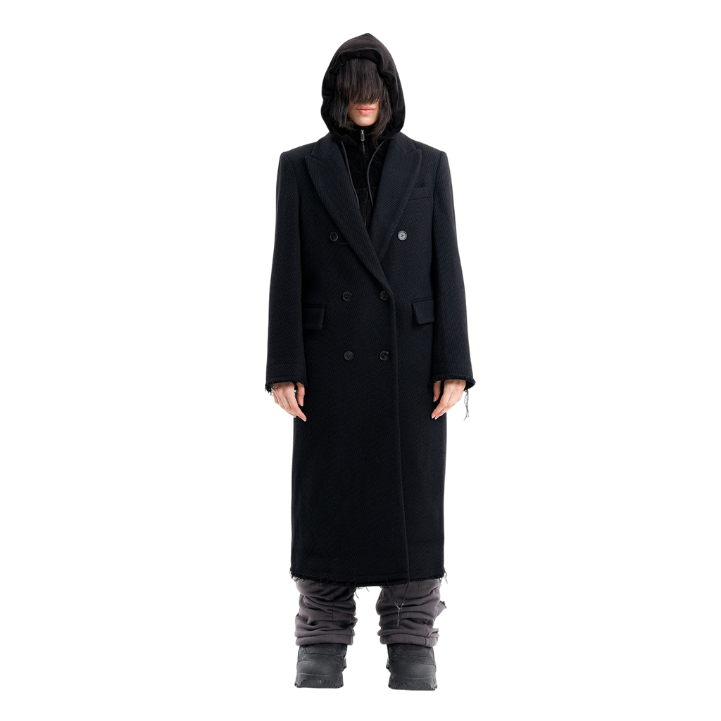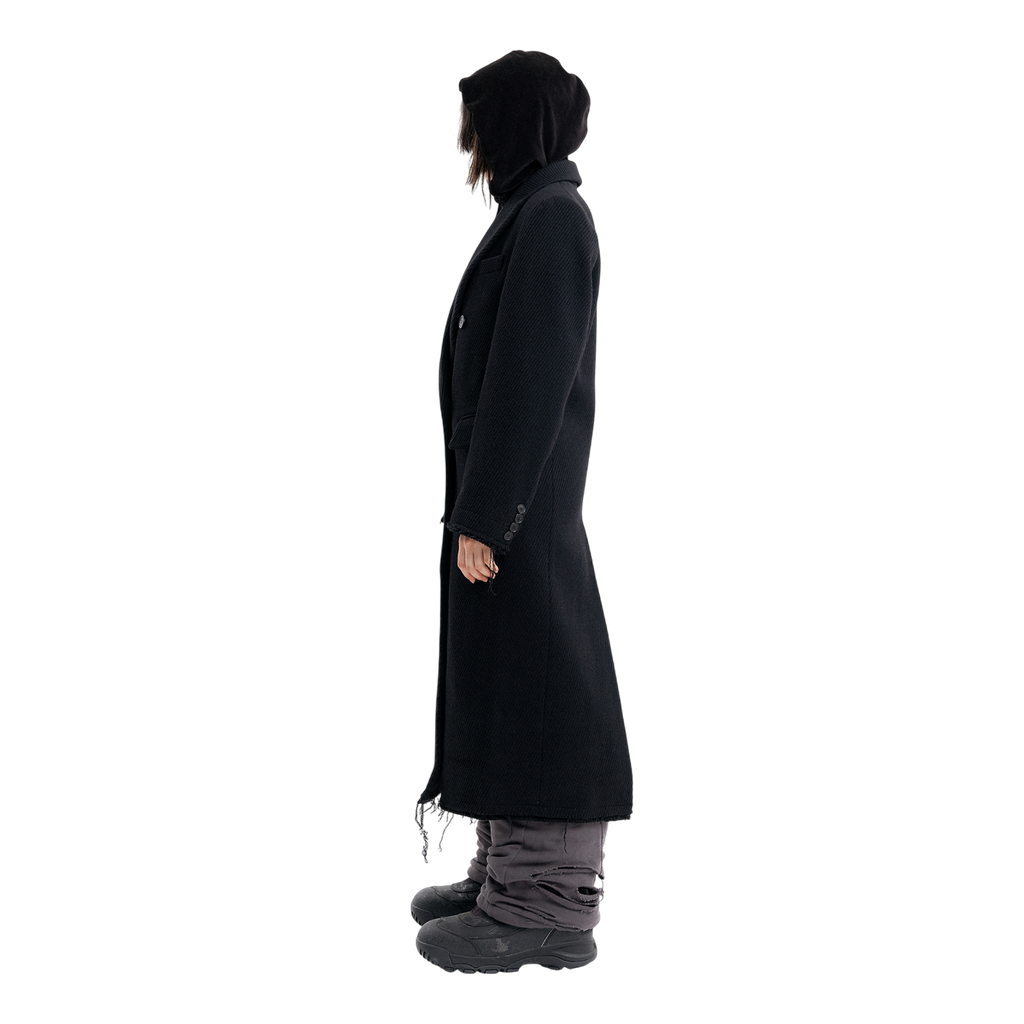 (Emma) Damaged Double Breasted Coat in Black