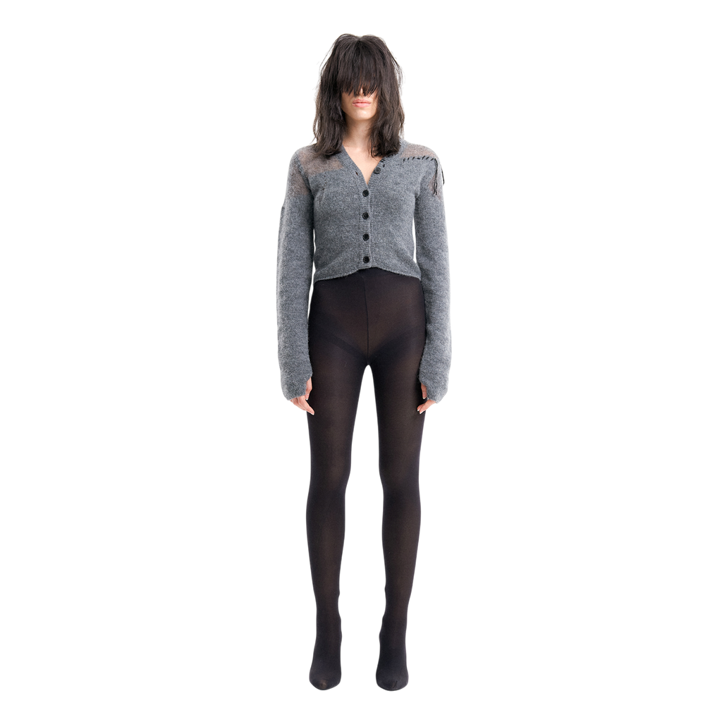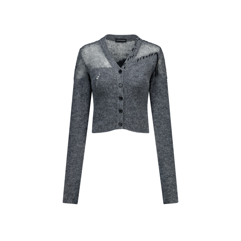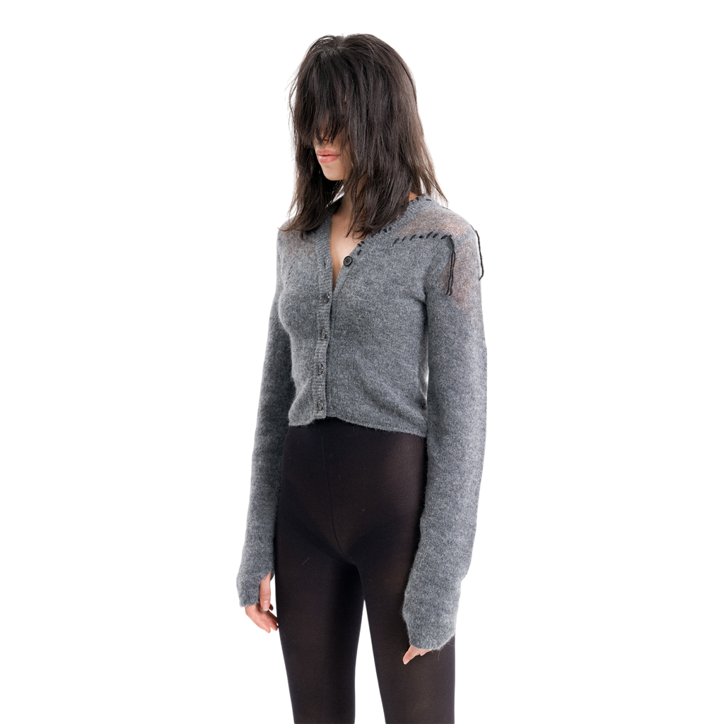 (Emma) Hand Stitch Cardigan in Melange Grey