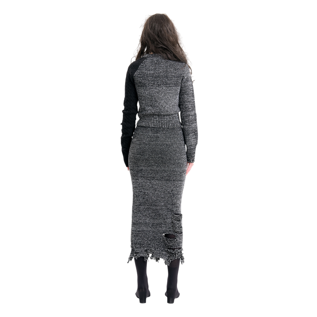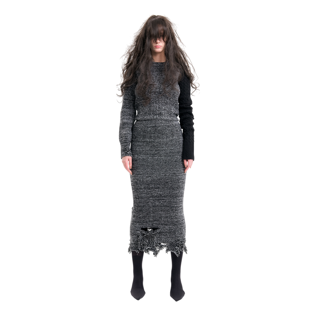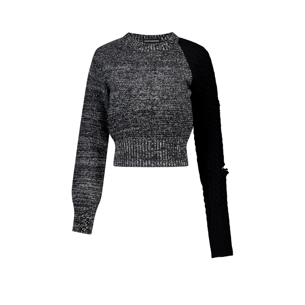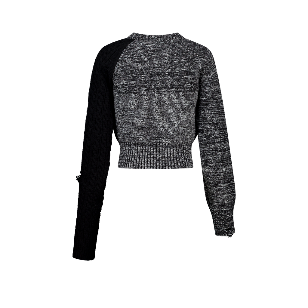 (Emma) Unbalanced Knit Sweater in Melange Grey
