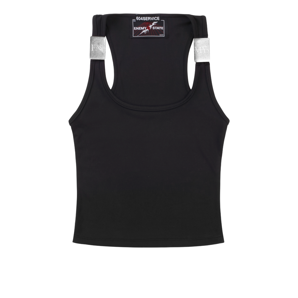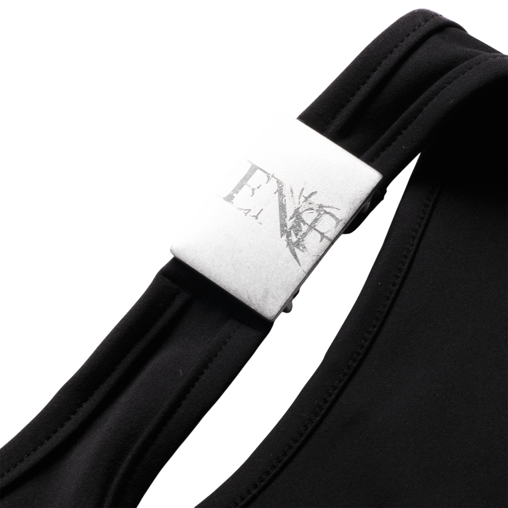 A sleek, slim-fit sleeveless top featuring 604SERVICE’s signature graphic-engraved buckle at the front. Crafted from high-quality stretch performance fabric, it offers a flexible fit designed to accommodate women’s sizes XS to L.