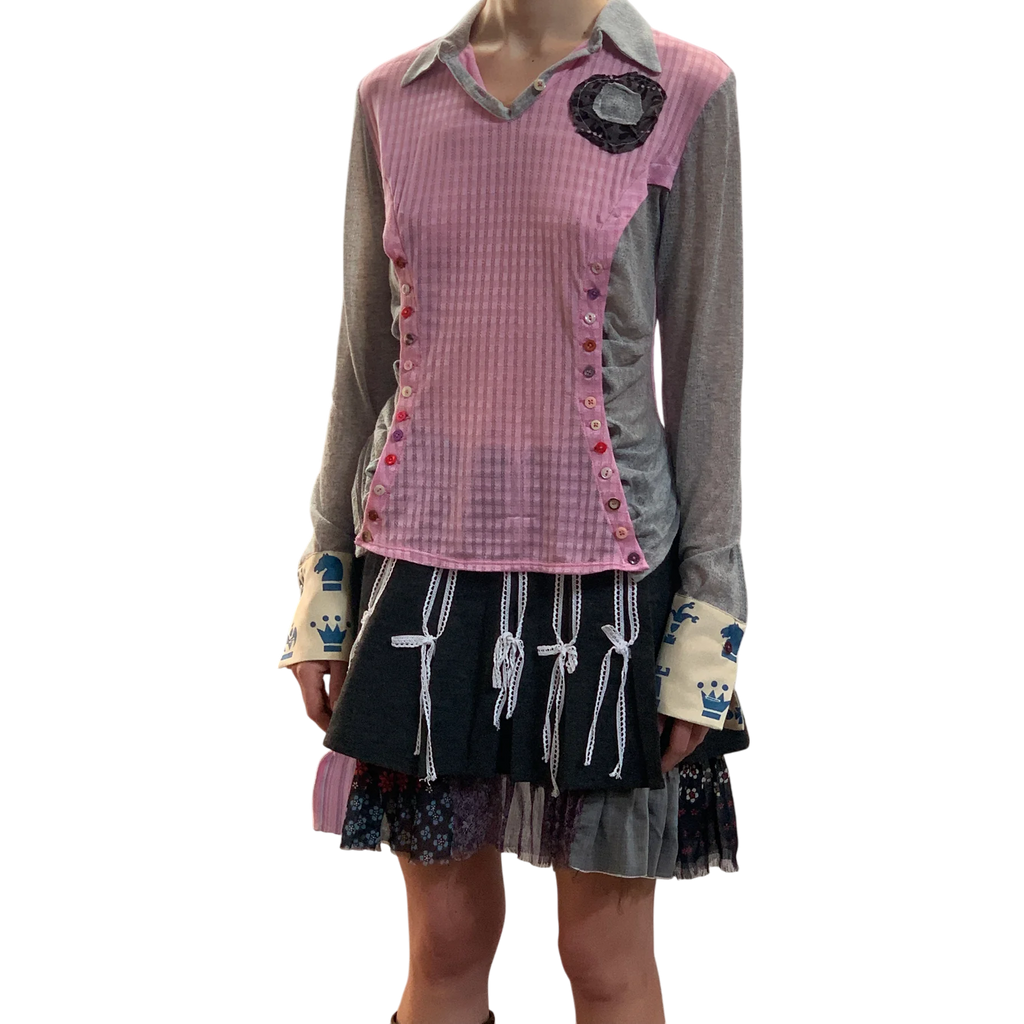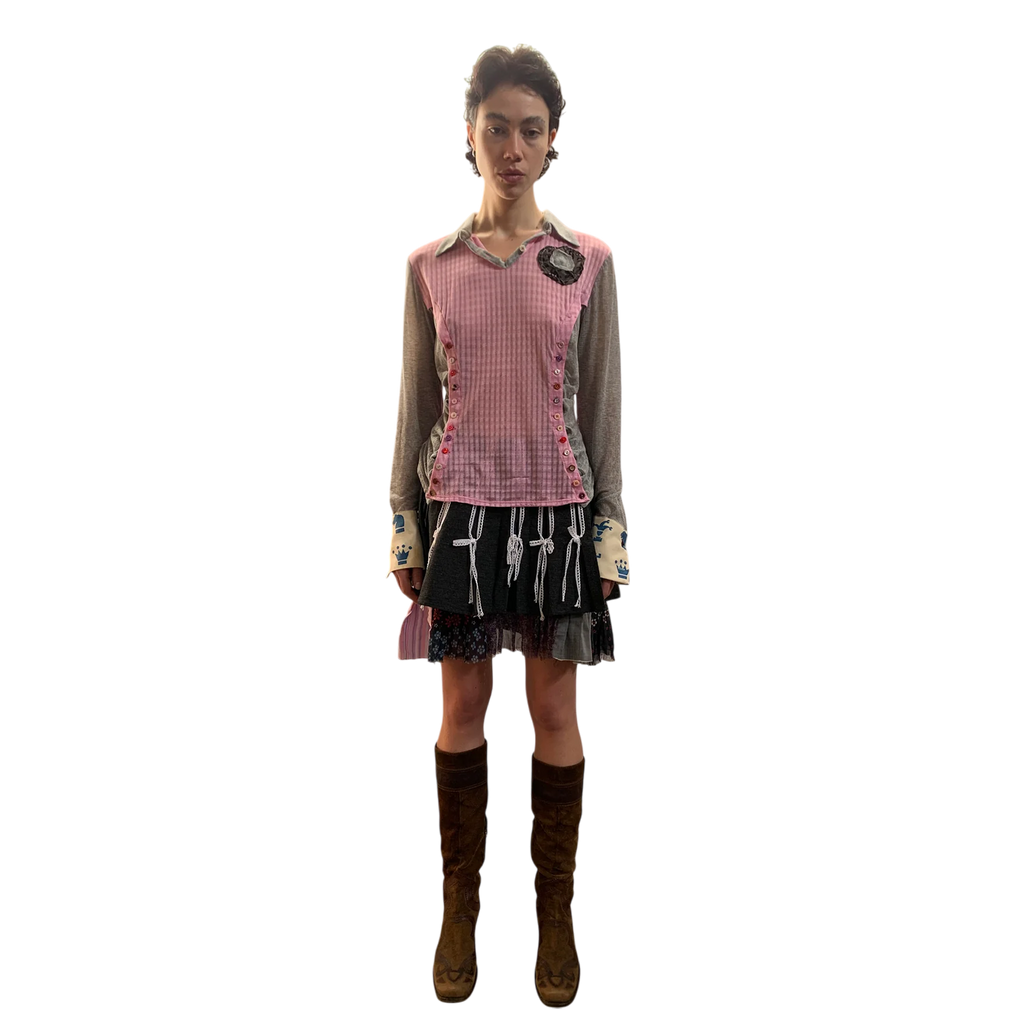 Garbage Core is a Milan-based project by Giuditta Tanzi, founded in 2019. The brand crafts handmade, upcycled garments that celebrate imperfections, transforming flaws into features. Each piece gives old materials a second life while preserving their unique stories.