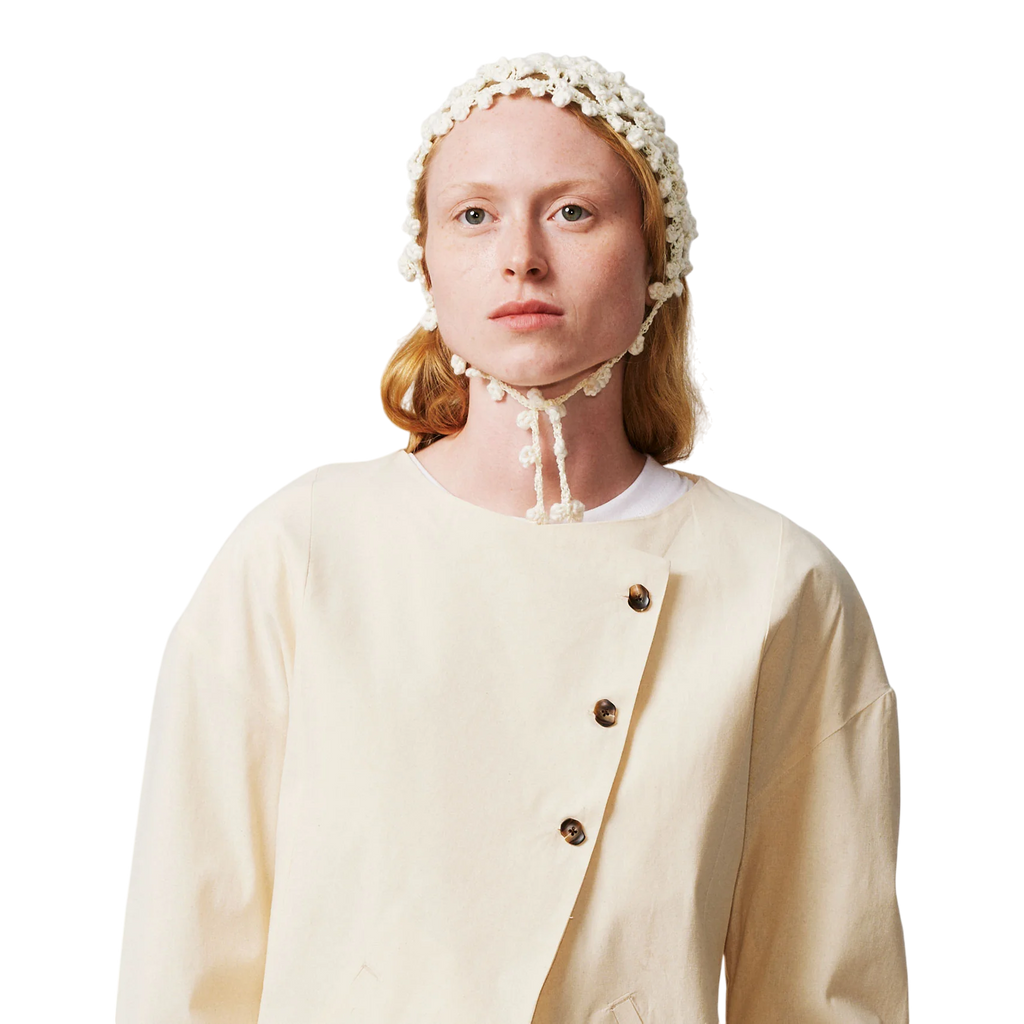 Founded in 2020 by Evangelina Julia, Evade House focuses on sustainable fashion and inclusivity. The brand offers unisex clothing, challenging traditional norms. Evade House targets those who value responsible consumption, aiming for a nomadic, adventurous, and sustainable lifestyle. The use of Braille labels, rough materials, and thick wool fabrics reflects a conscious responsibility towards the blind community. Future collections will focus on using hemp, algae, and recycled garments to create new fabrics.