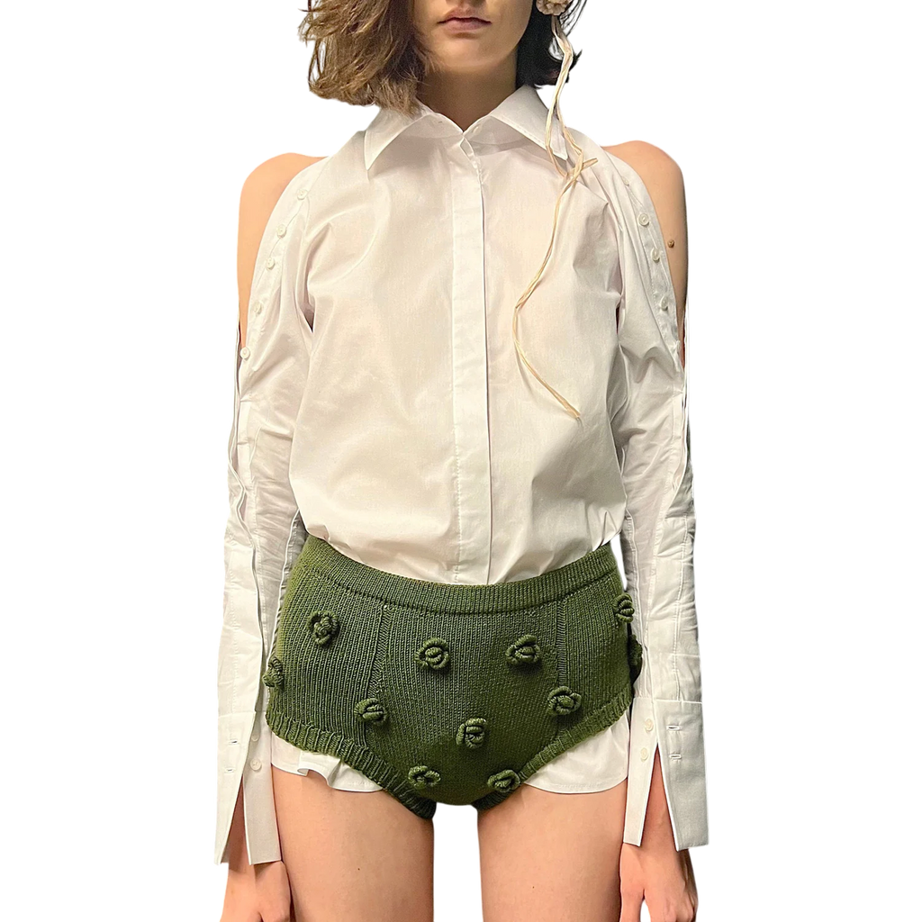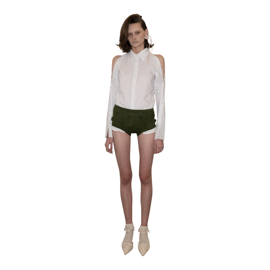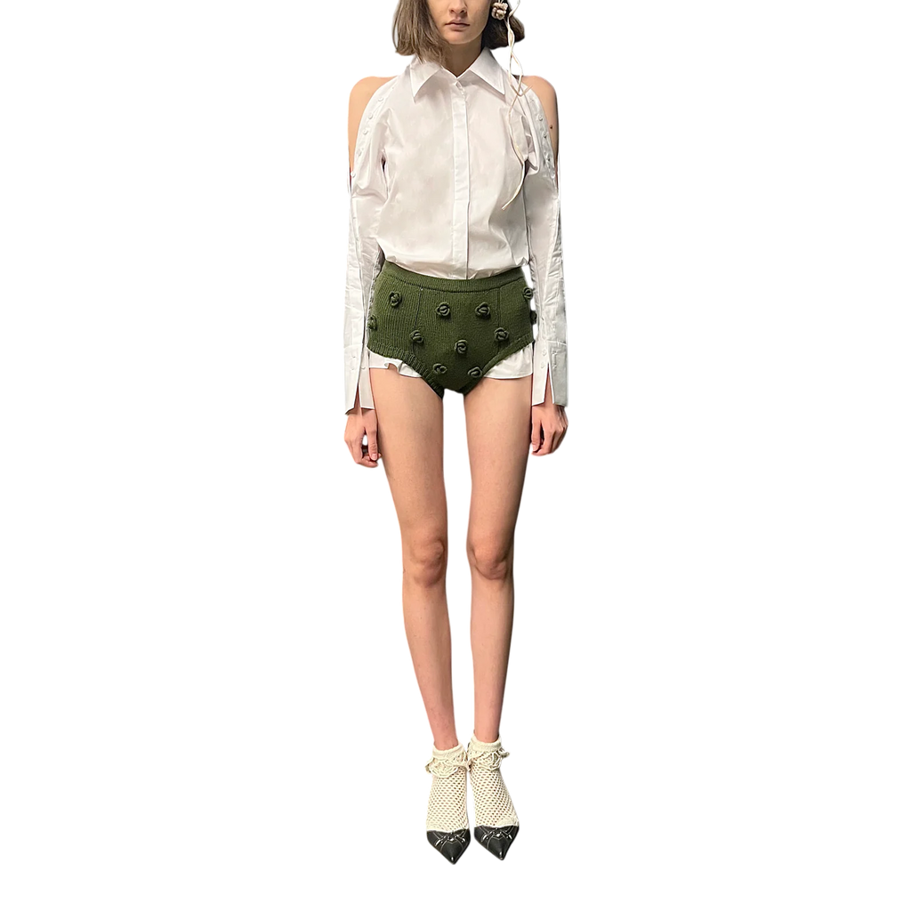 The Knitted Floral Shorts by Nastyamasha are crafted from 92% microfiber and 8% elastane, offering a comfortable and stretchy fit. These shorts feature a delicate floral design, combining style with ease for an elevated casual look.