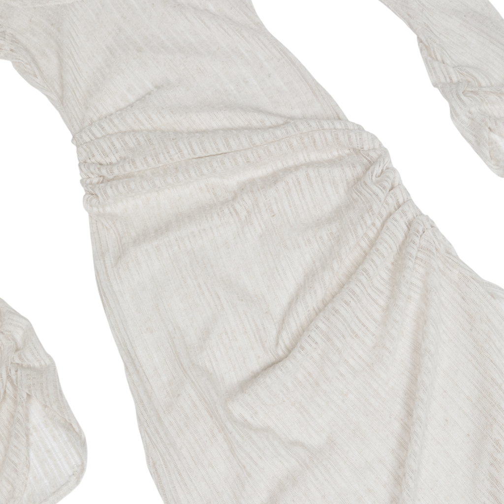 Extra-long ruched bell sleeves
