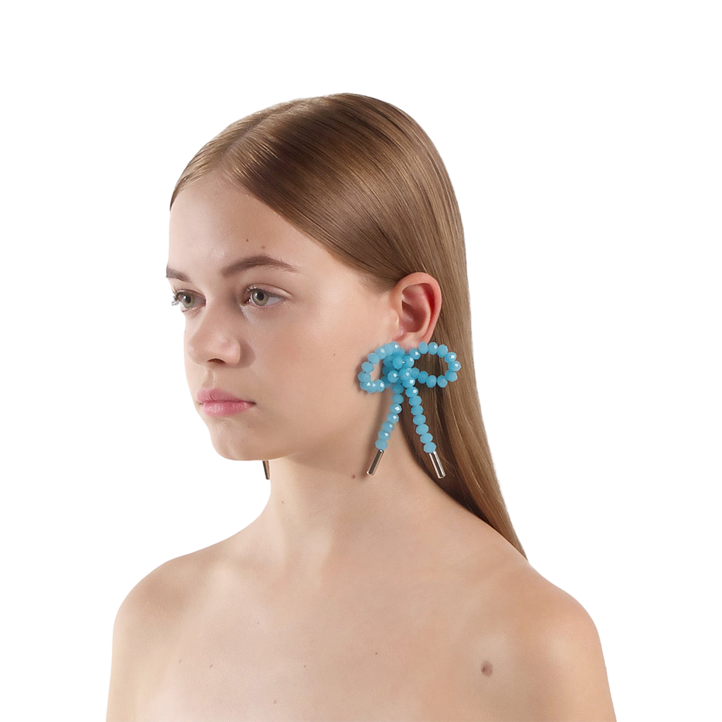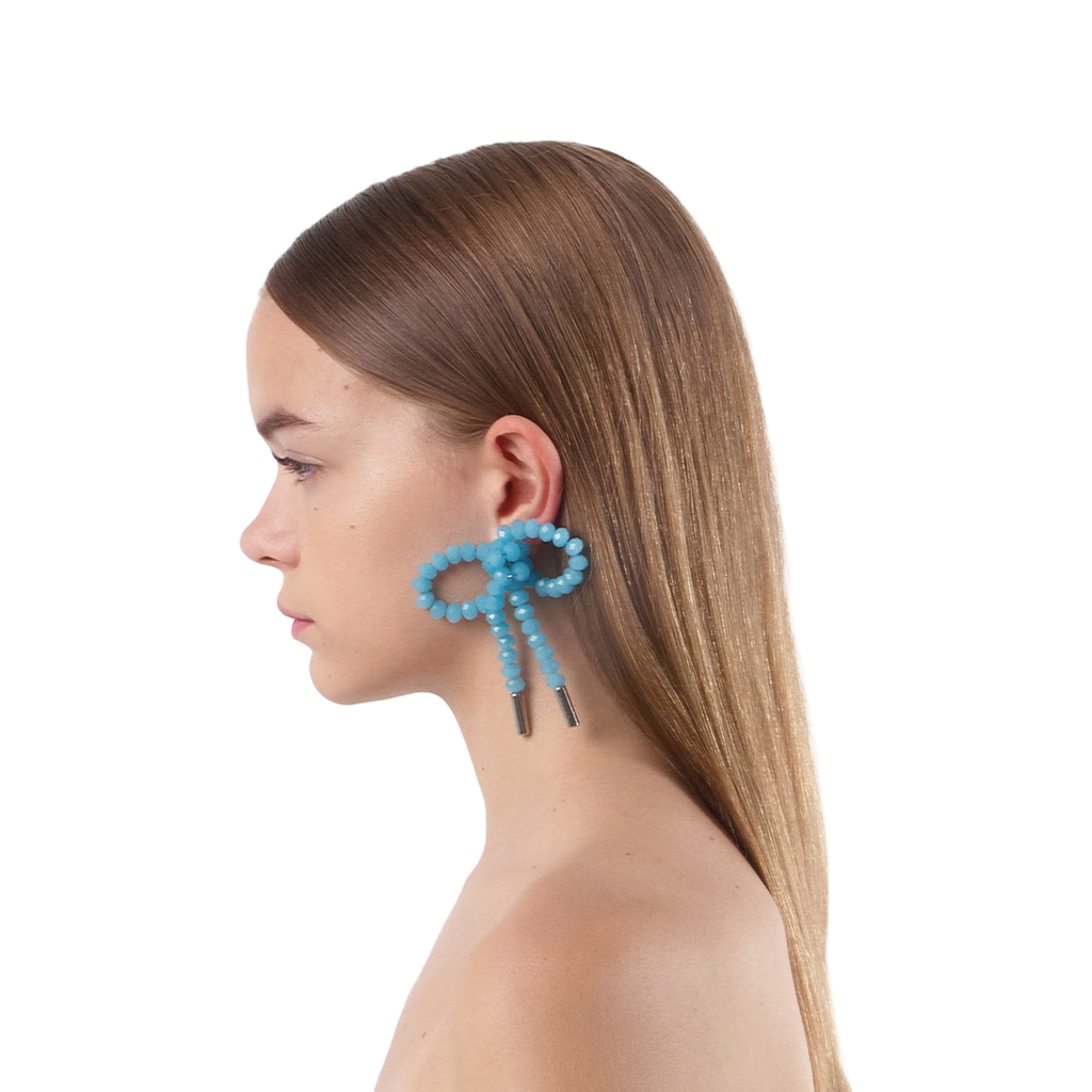 Handcrafted with care, these amazing ribbon earrings feature jade faceted stones and a pink glazed brass back with a butterfly clasp and omega. The engraved '1' logo adds a touch of elegance.