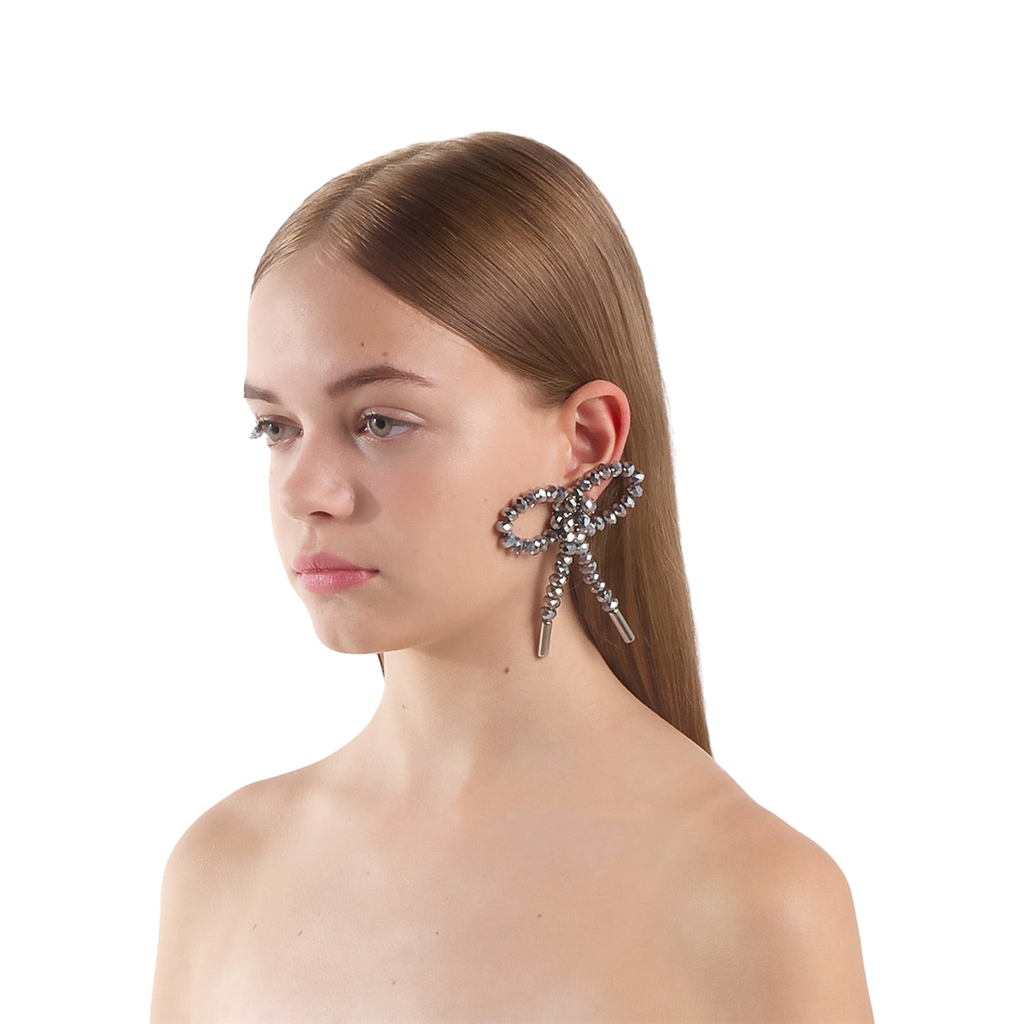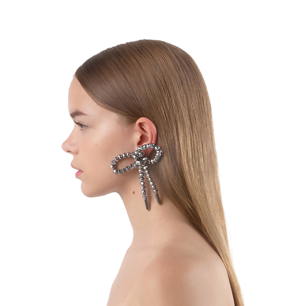 Handcrafted with care, these amazing ribbon earrings feature jade faceted stones and a grey glazed brass back with a butterfly clasp and omega. The engraved '1' logo adds a touch of elegance.