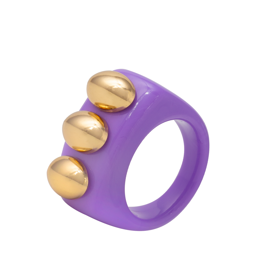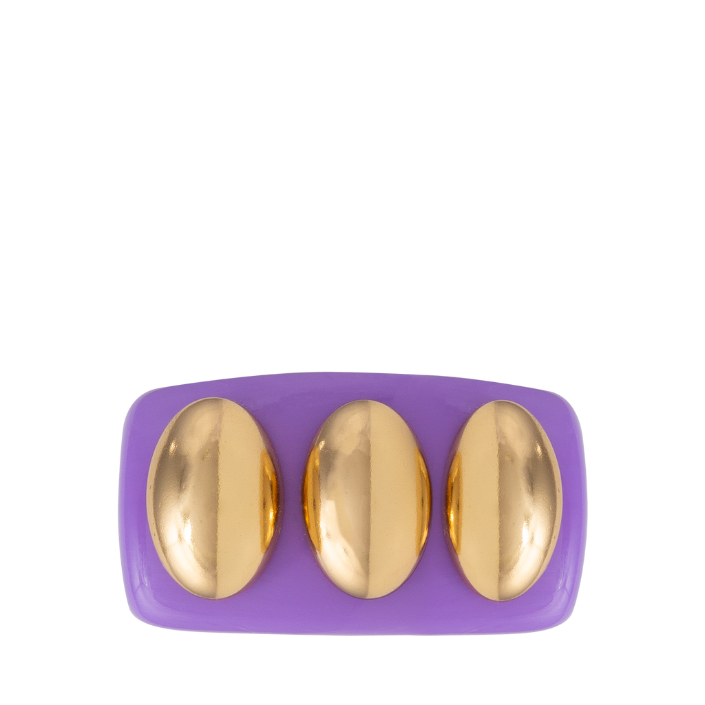 Material: Gypsy gold ovals on a base of a purple rounded rectangle ring.