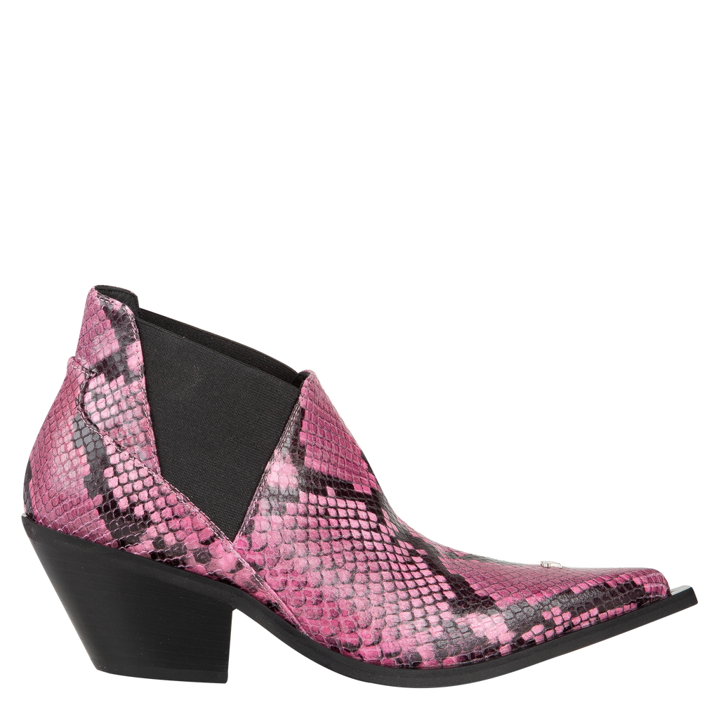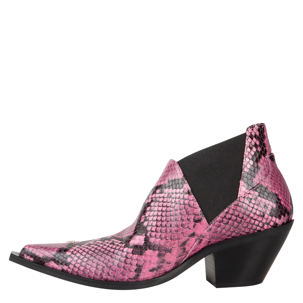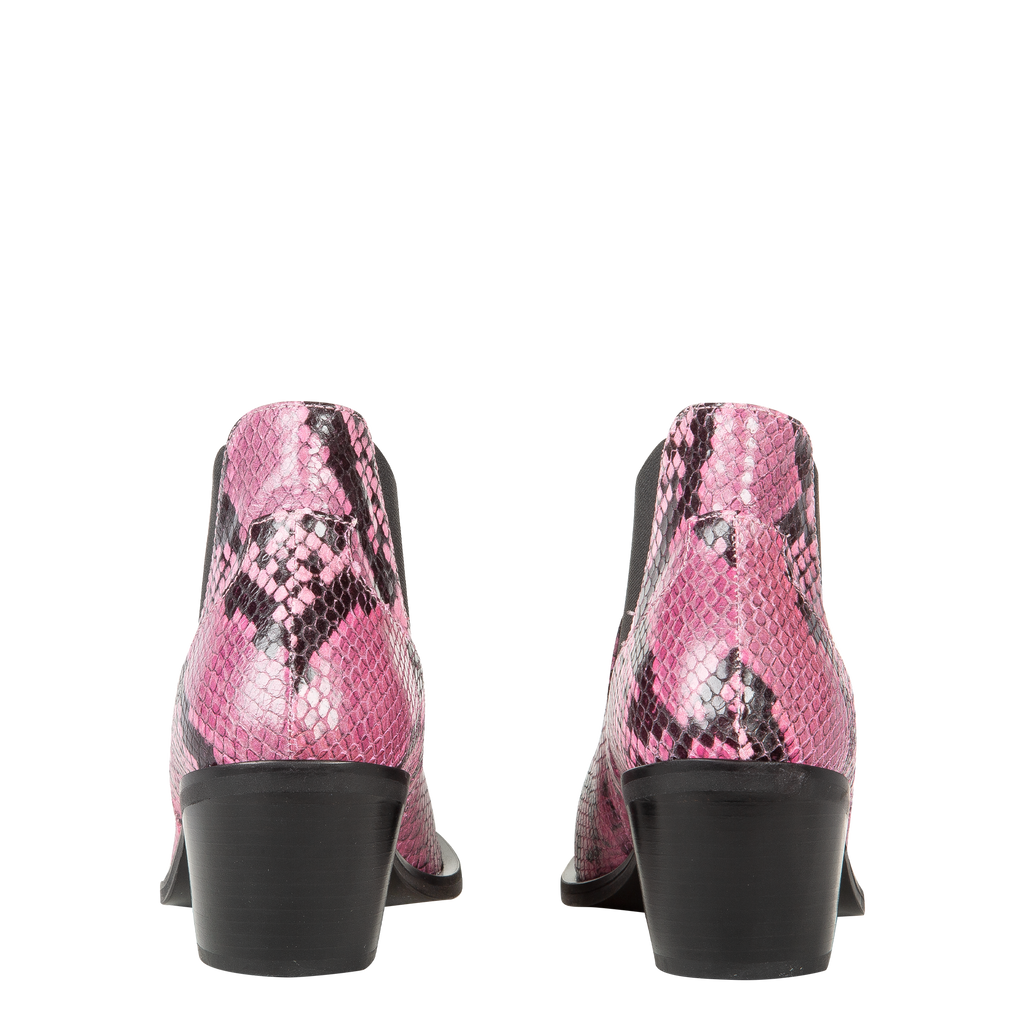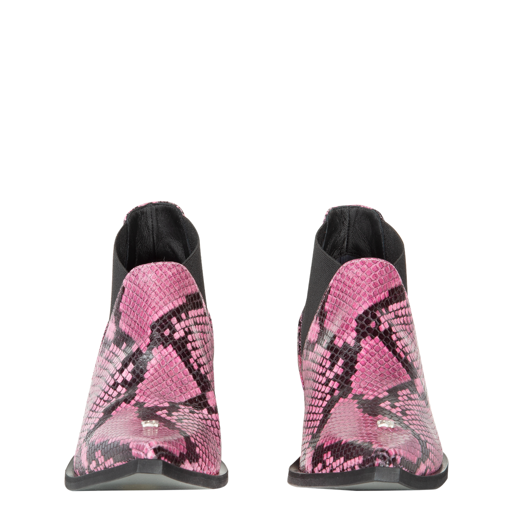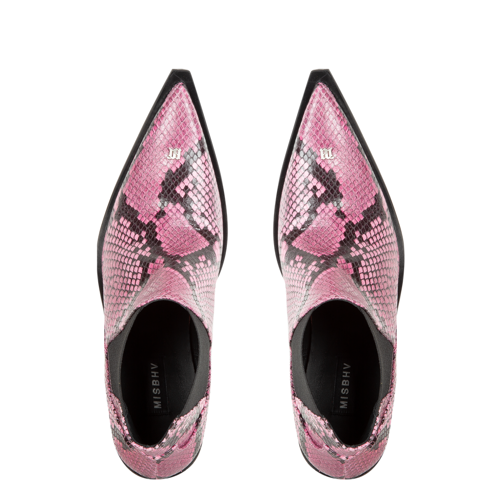 Ankle-low leather boot in violet. Pointed toe. Tonal leather lining. Stacked leather cuban heel. Monogram rivet at toe.