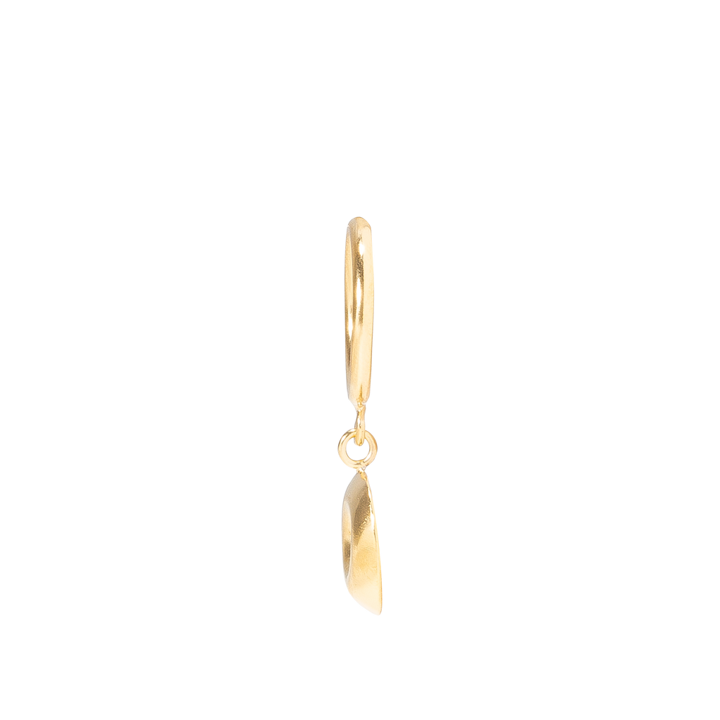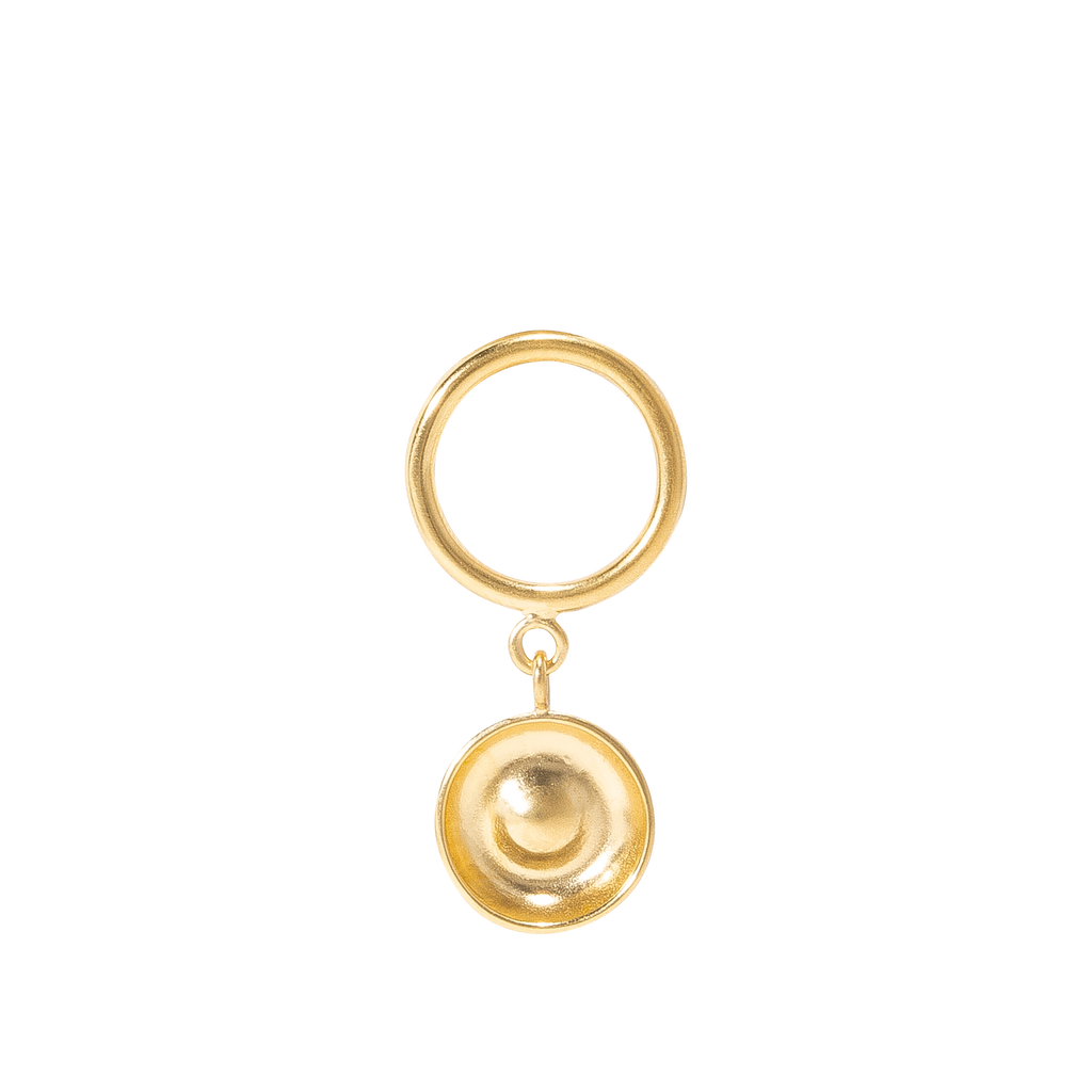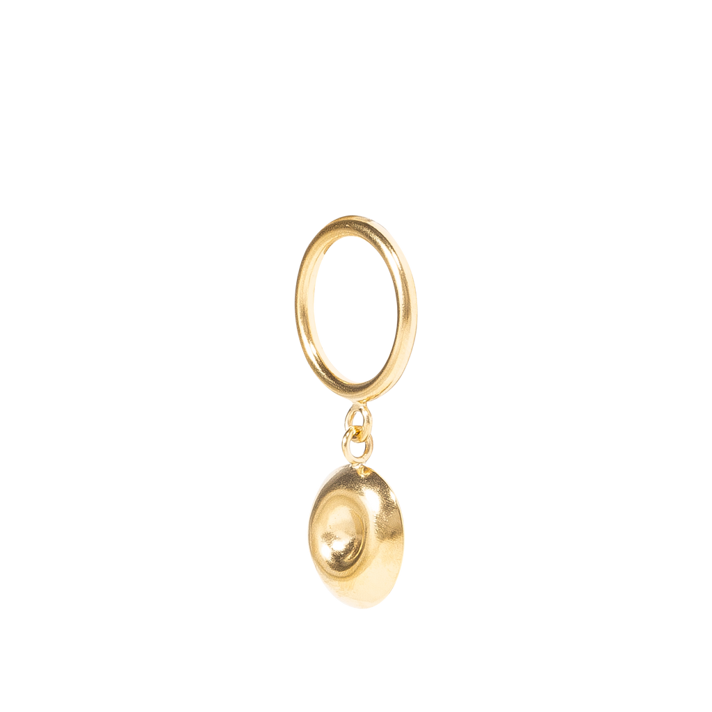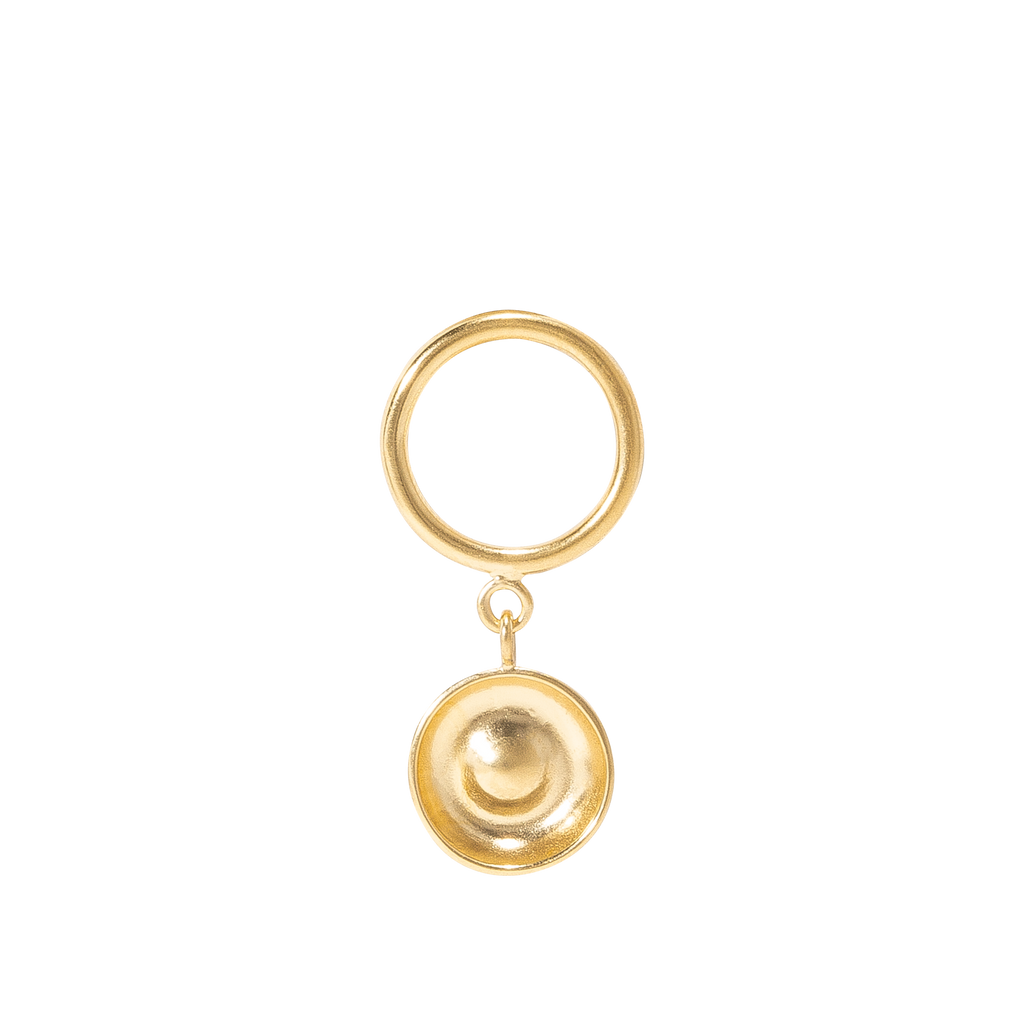 Hand formed, three dimensionally textured brass coin. Inspired by shapes from seashells and dried flowers. The coin hangs from a thick gold band and moves freely.
