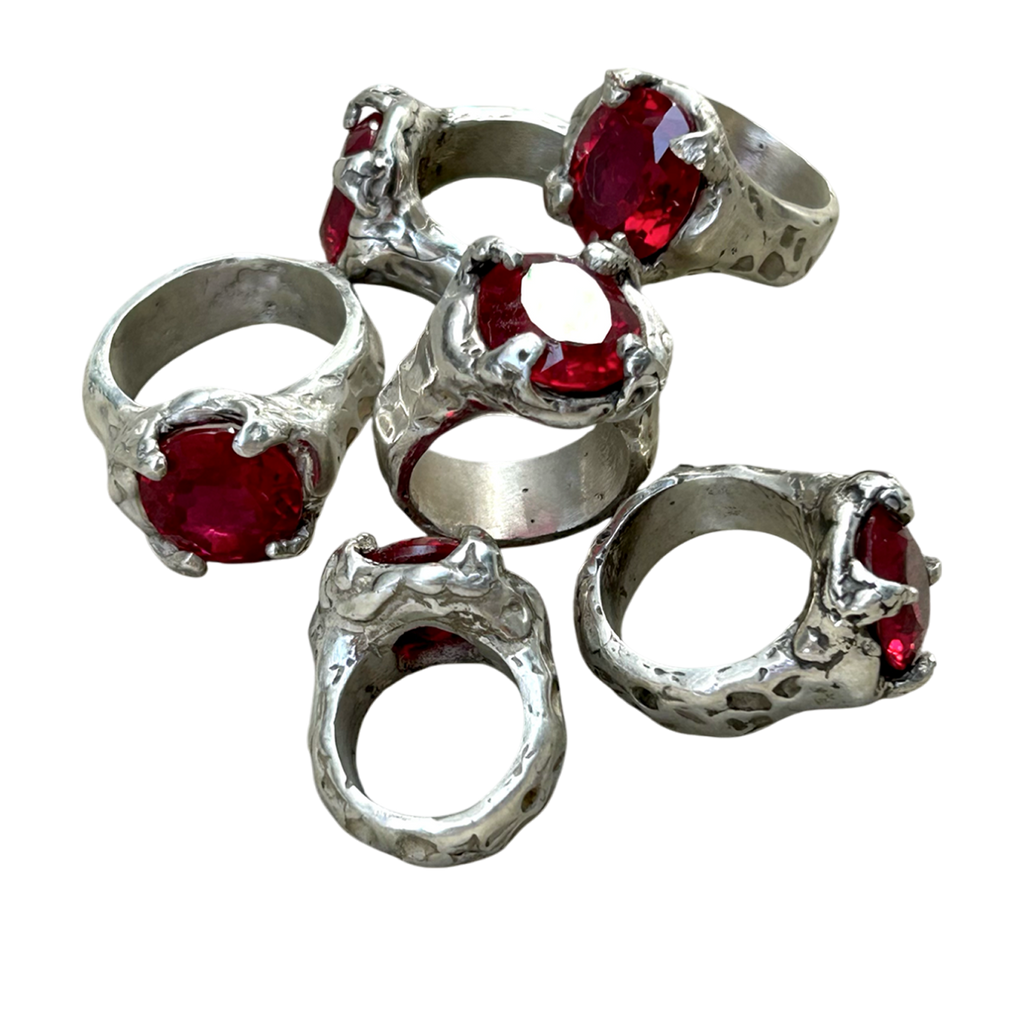 Cast in silver 925, ruby stones.