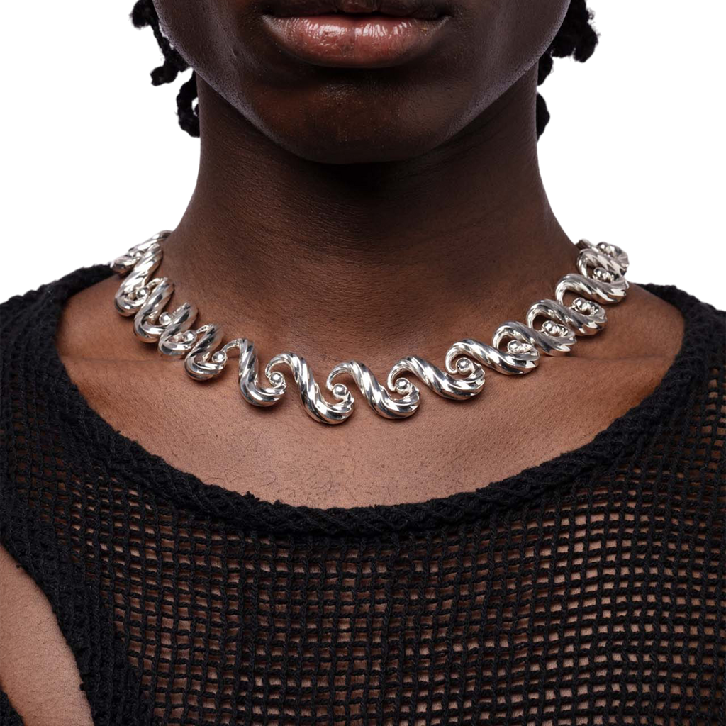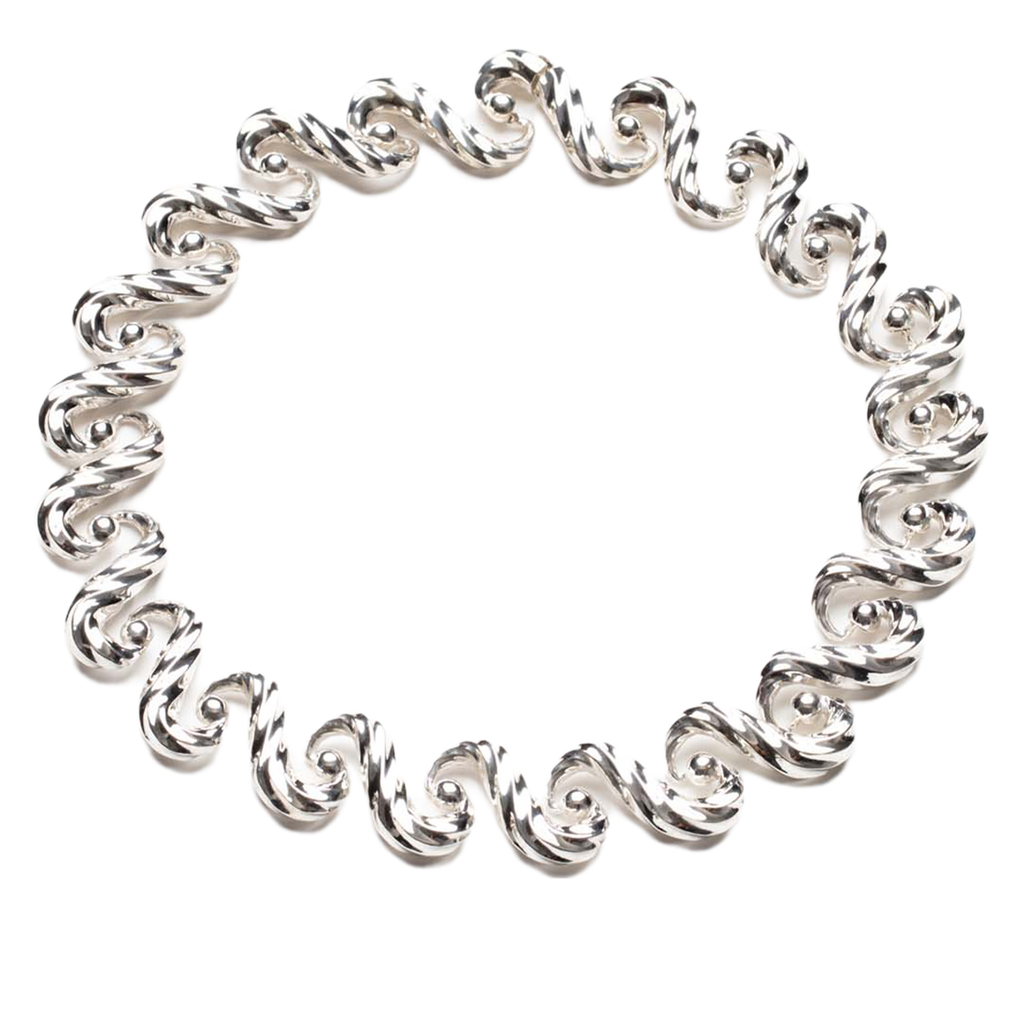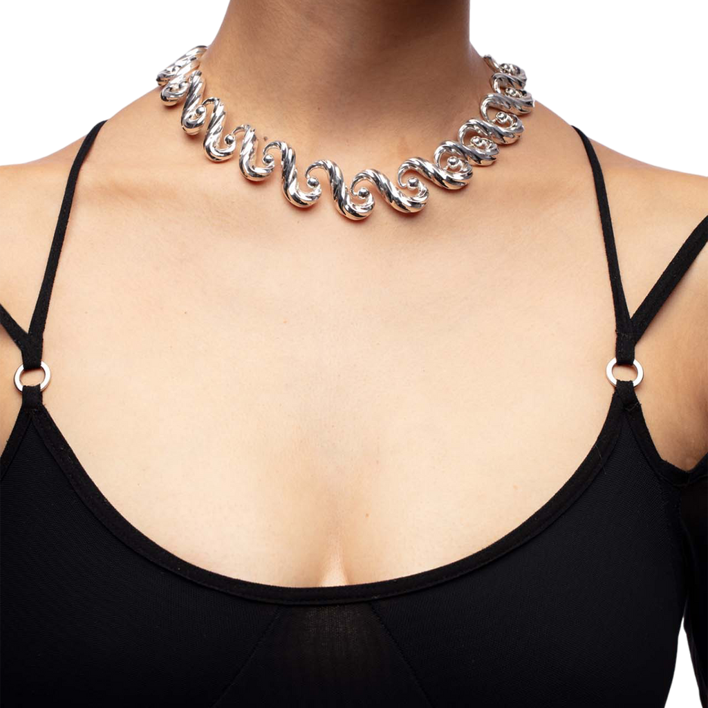 Necklace inspired by the movement of the sea and its continuous cycle, with hidden joints.