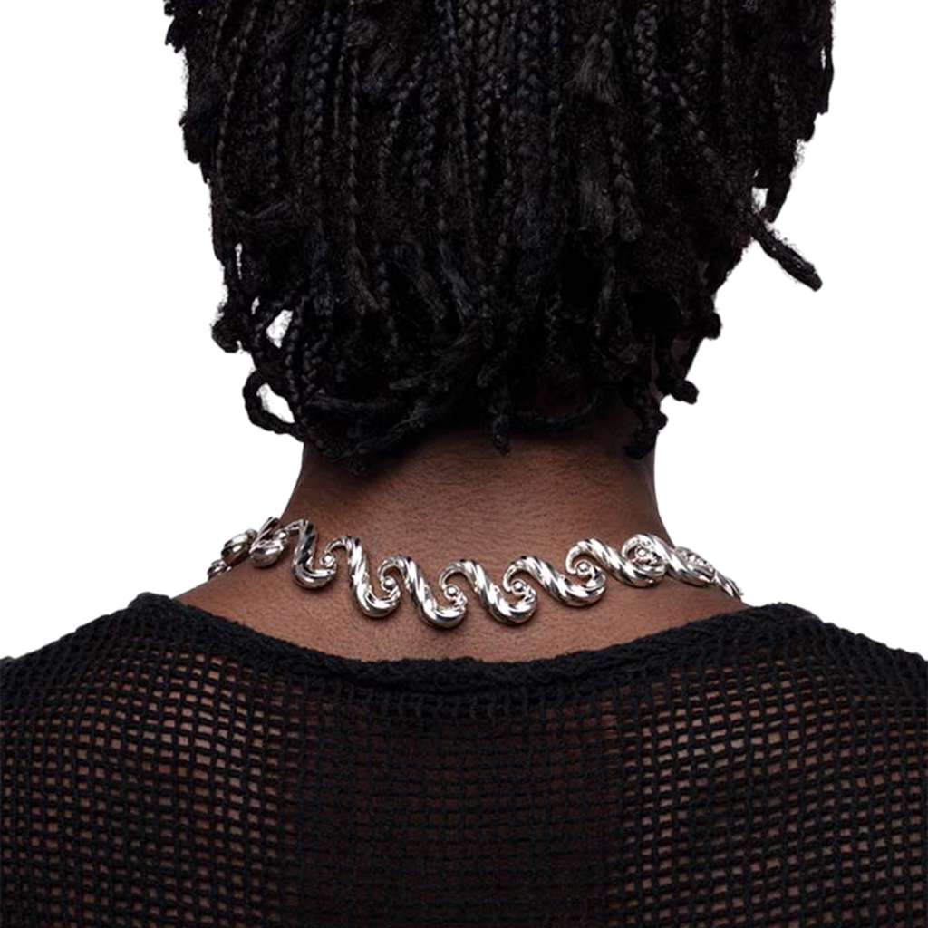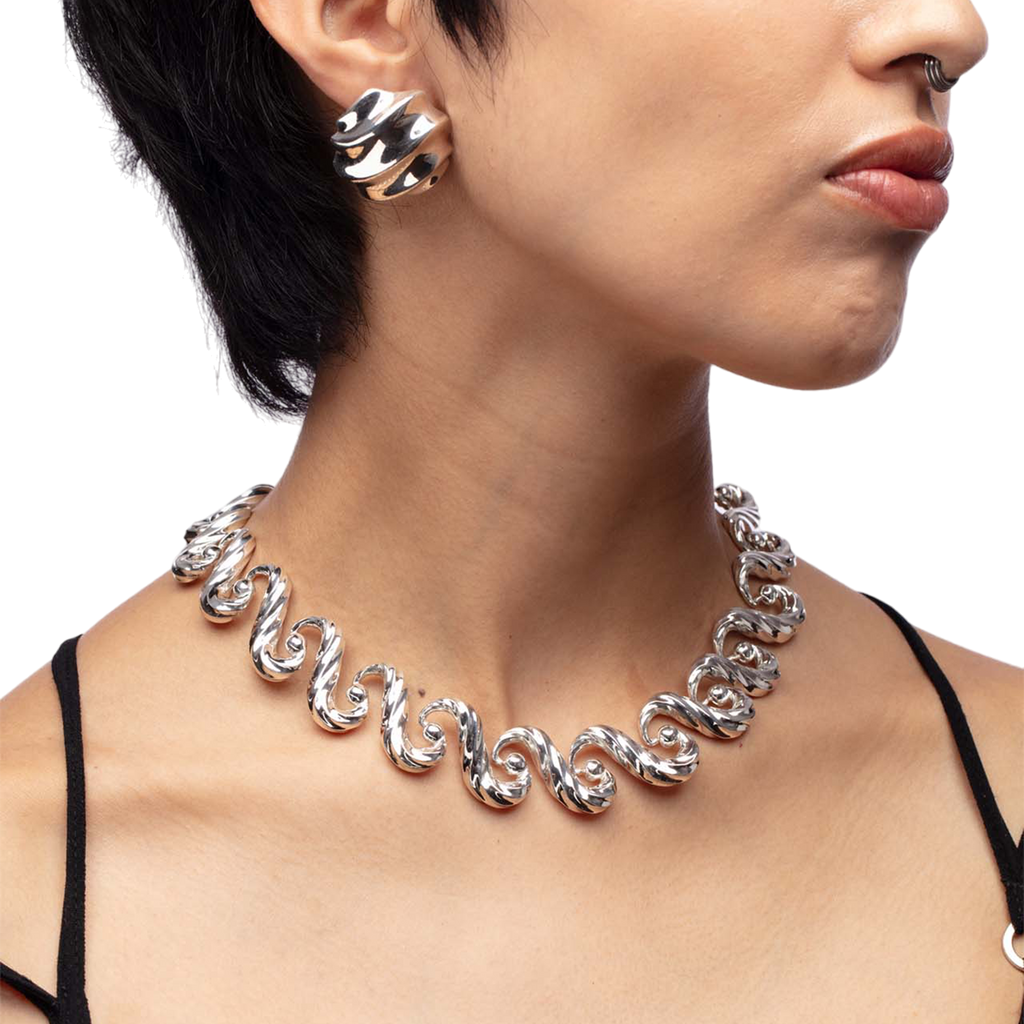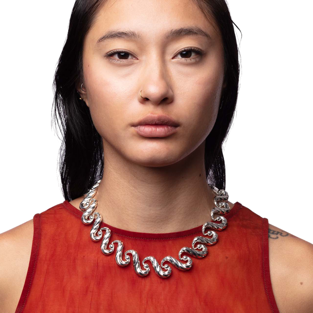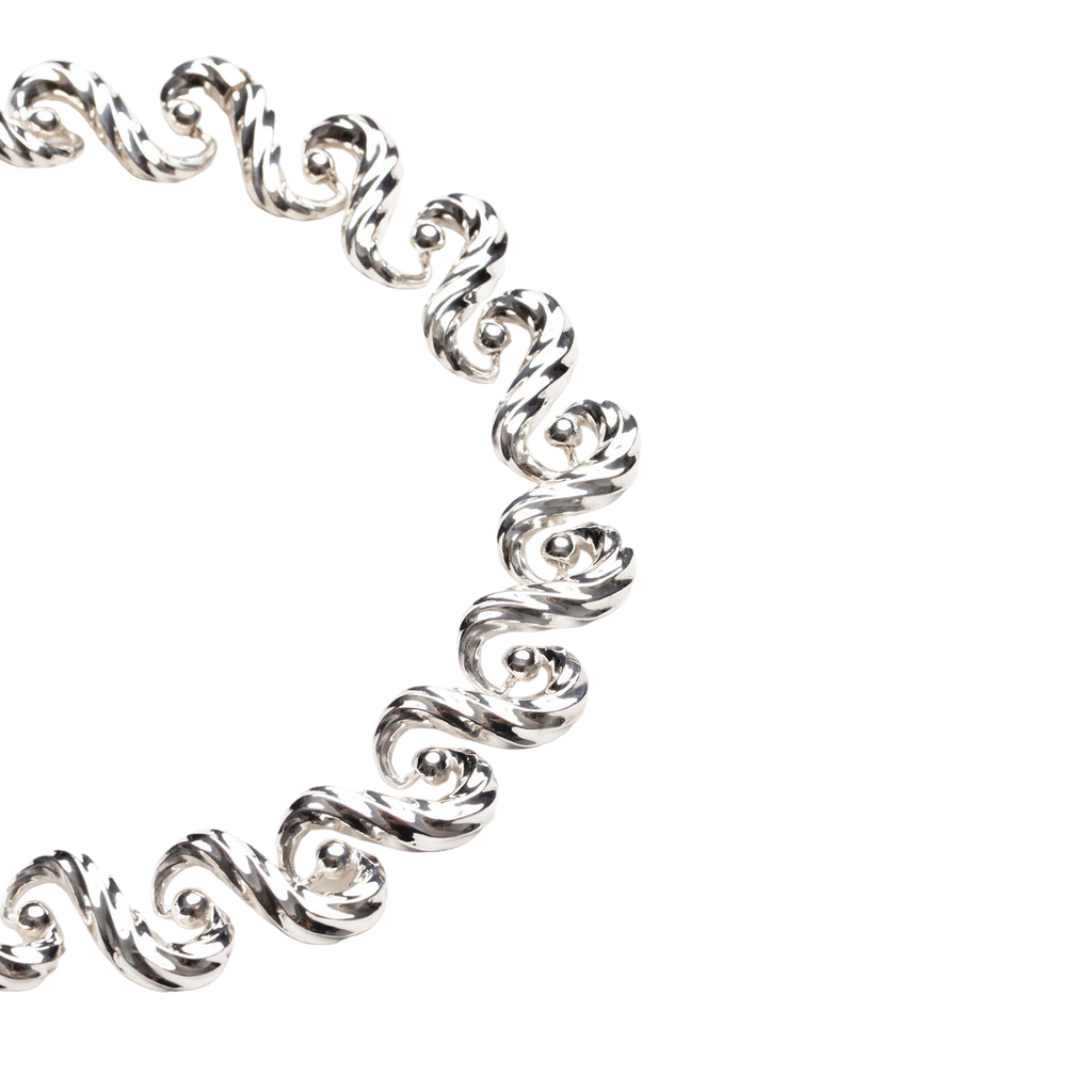 Necklace inspired by the movement of the sea and its continuous cycle, with hidden joints.