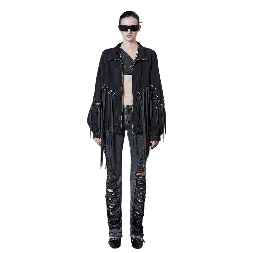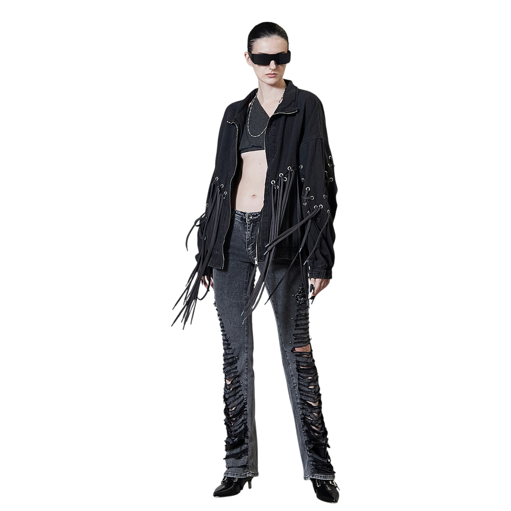 Oversized Corset Washed Tassel Jacket
