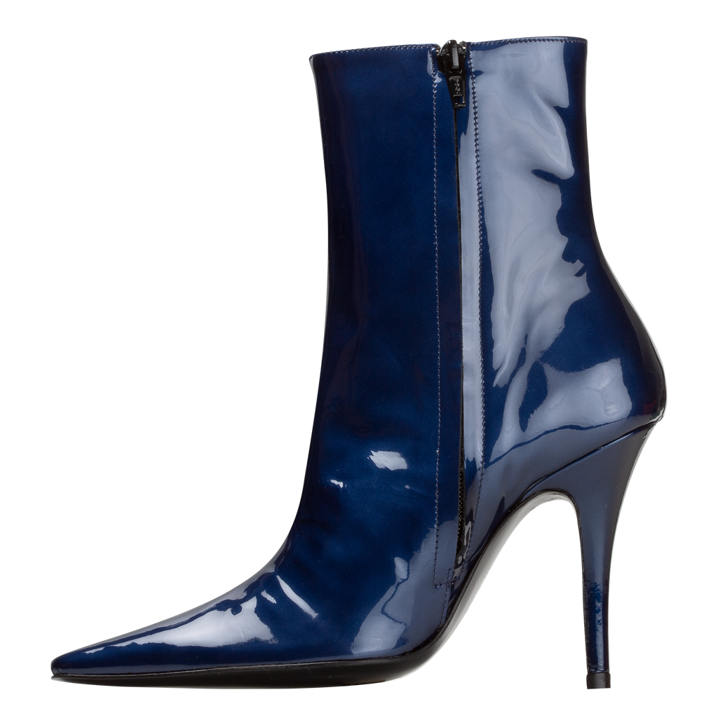 Pointed toe, slip on style ankle length boots with leather insole and leather sole. Approx. 11cm heel height.