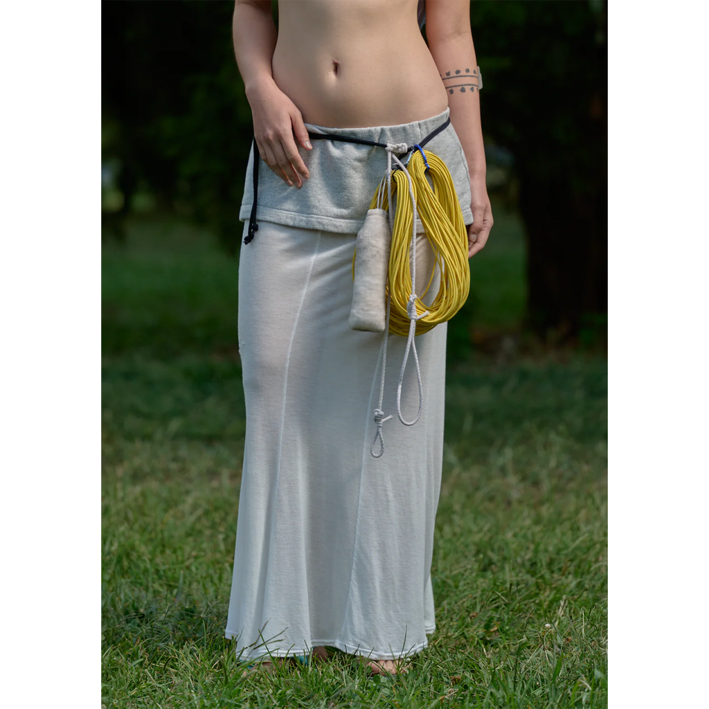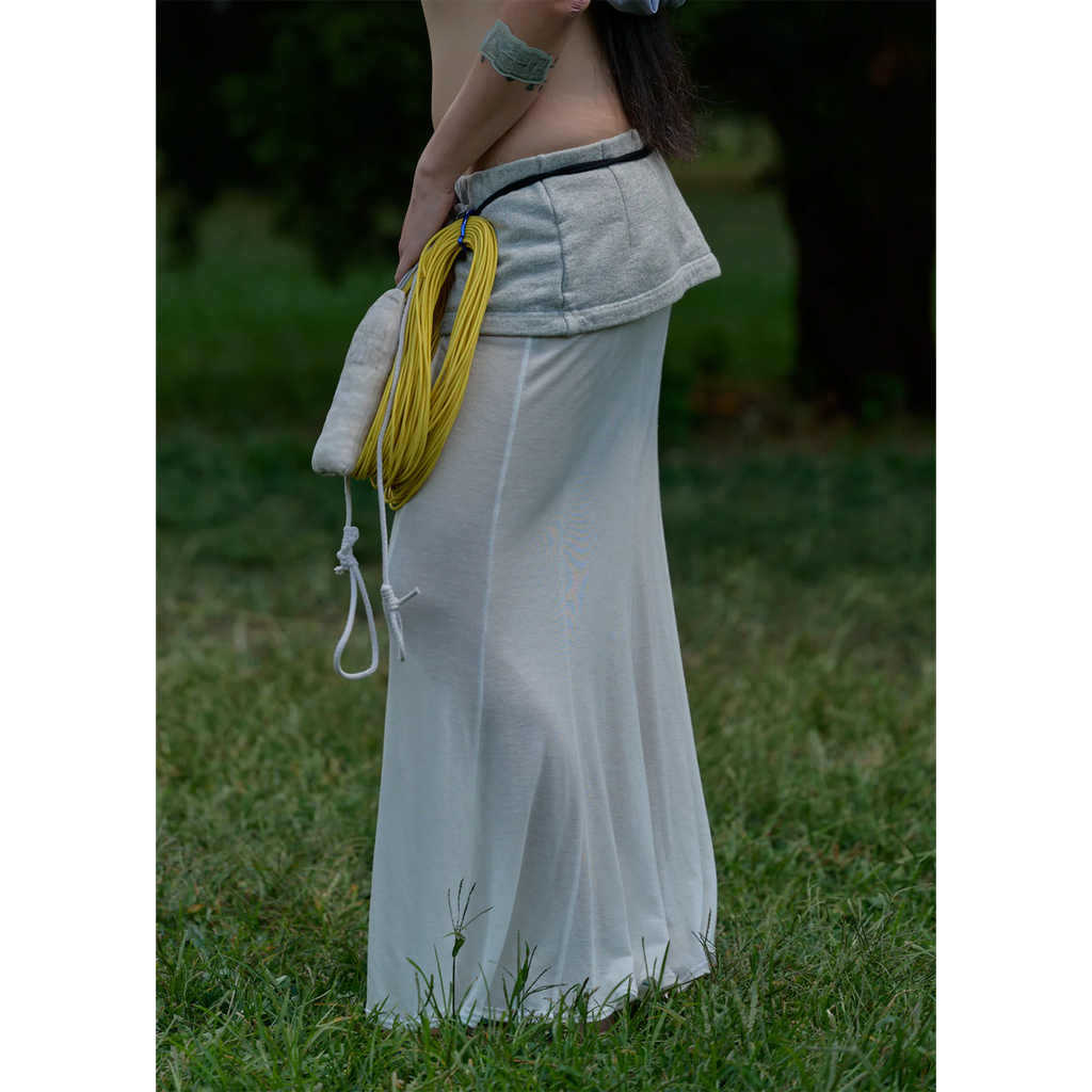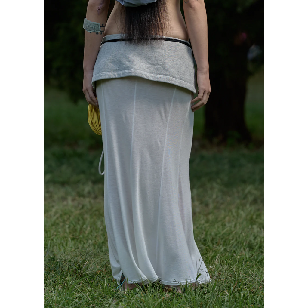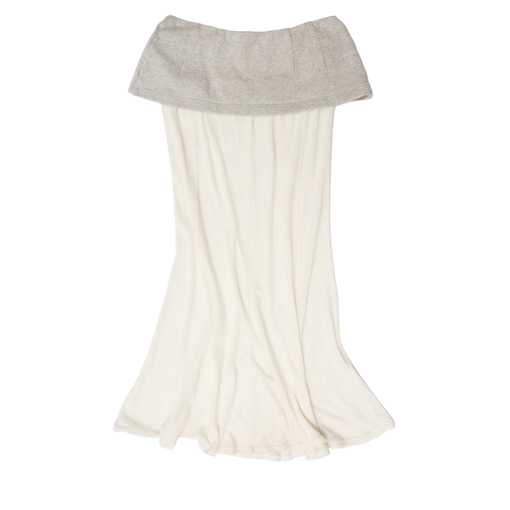 A plain version layered skirt. Outer layer in a light gray cotton terry, inner layer in smooth wool rayon jersey.