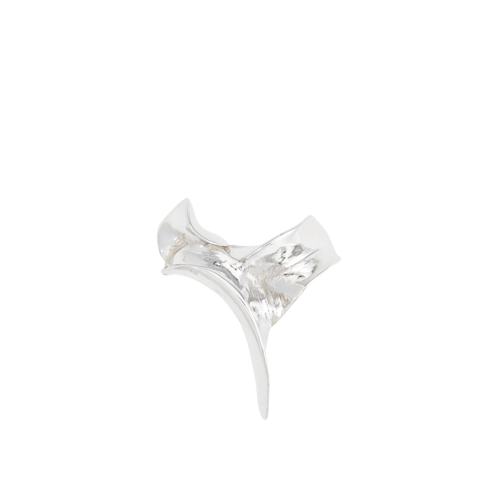 Freya Douglas Ferguson, a London-based sculptor and self-taught jeweler, blends her unique style, influenced by Biomorphism and sci-fi imagery. Collaborating with renowned designers and worn by artists like Caroline Polachek, her one-of-a-kind pieces are handmade in recycled sterling silver, emphasizing process and materiality.