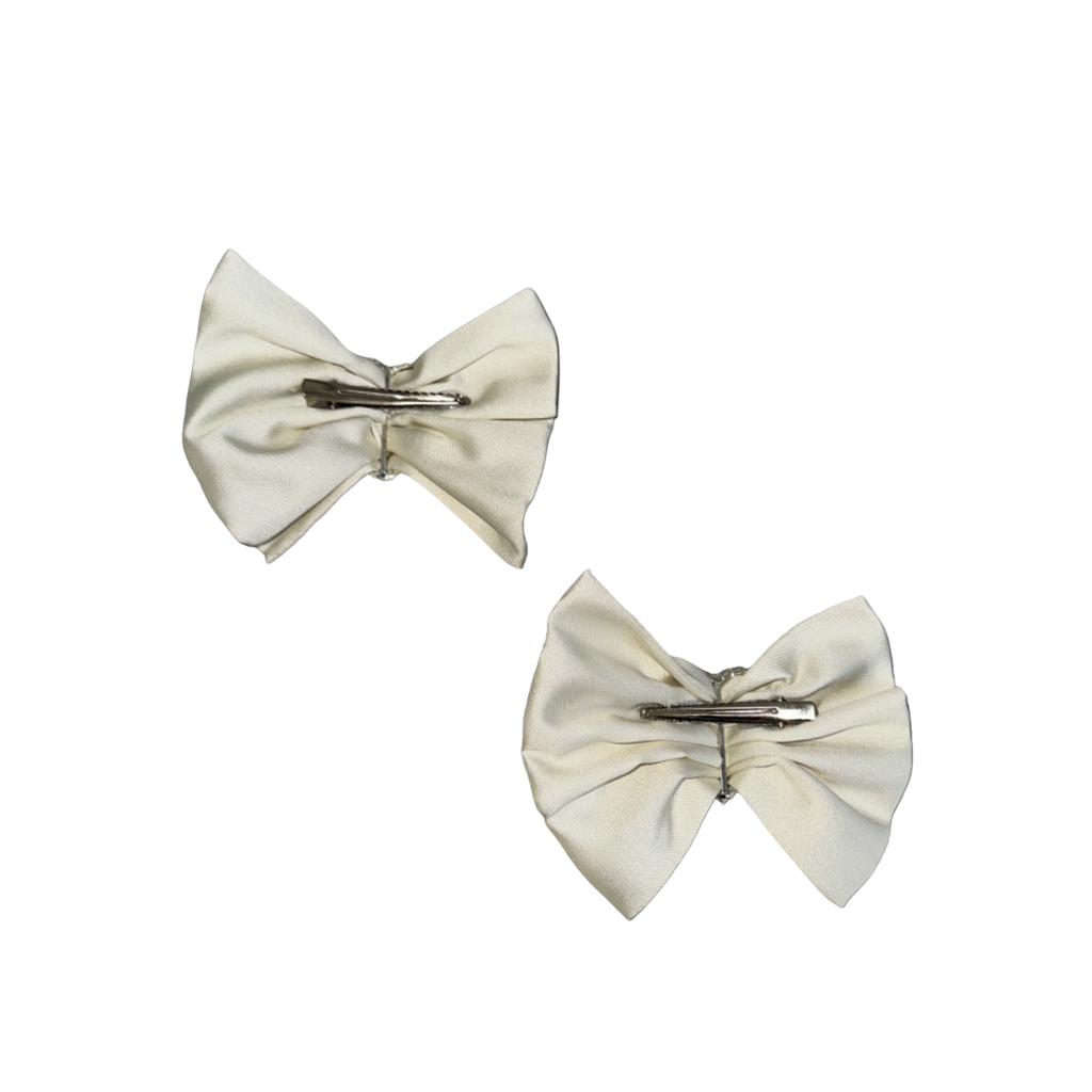 Small bow hairclip in ecru. Sold as pair.