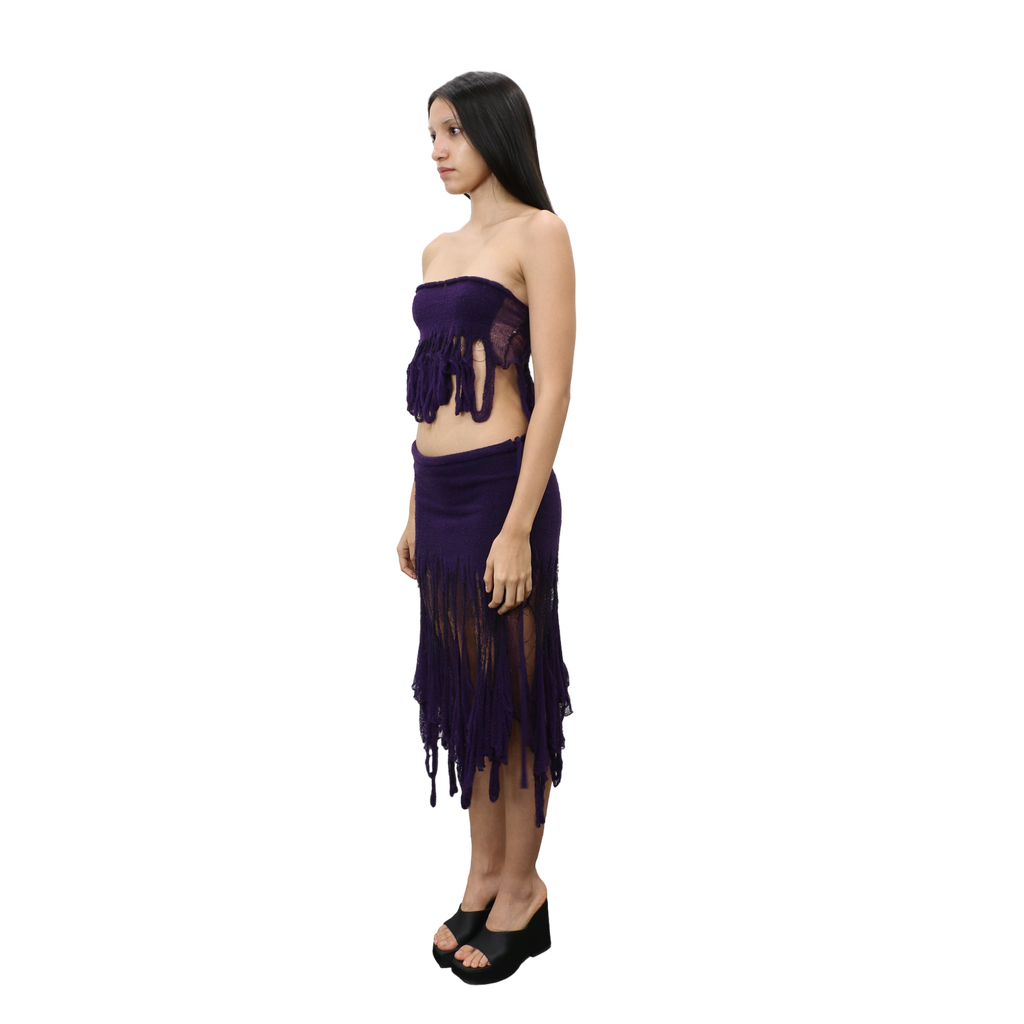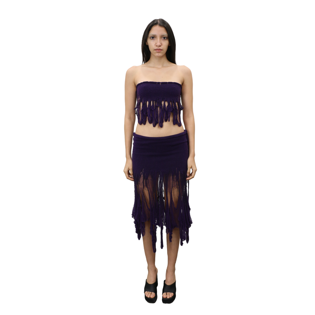 Knitted tube top with organic detail in and loop detail in bottom of body