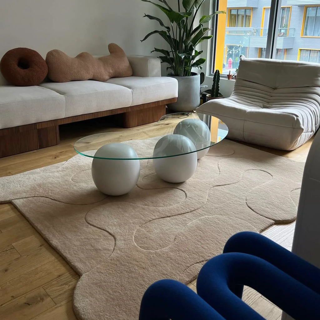 Valley is our take on a traditional, circular rug. Valley features three windows to the ground. Valley resembles the natural dips between two peaks.