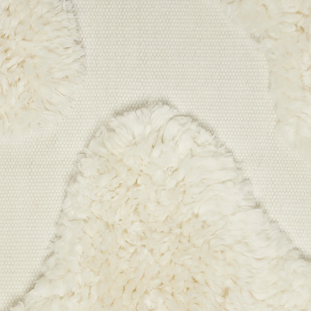 Orca features organically shaped islands of shag that fall over and into our hand woven rug. Orca highlights the playful relationship between depth and perception by incorporating shag into the hand woven wool base.