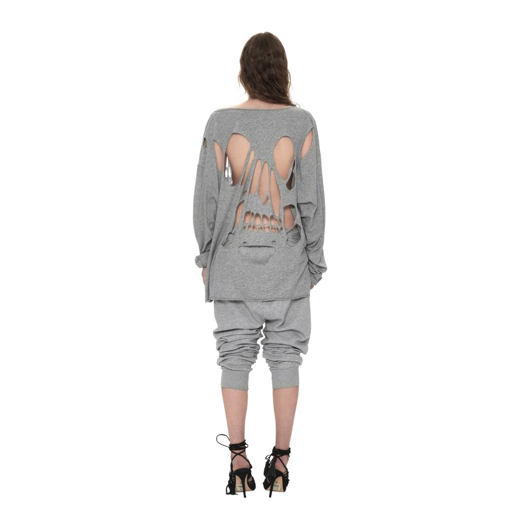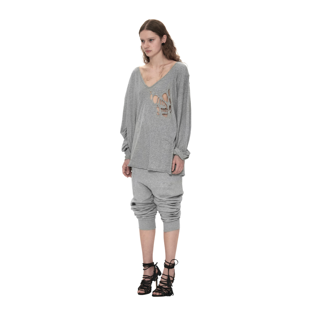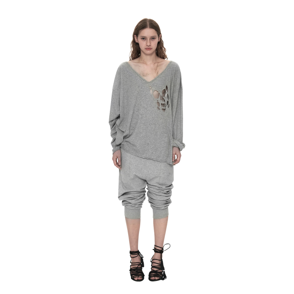 V-Neck Tee with Skull Cutout in Grey