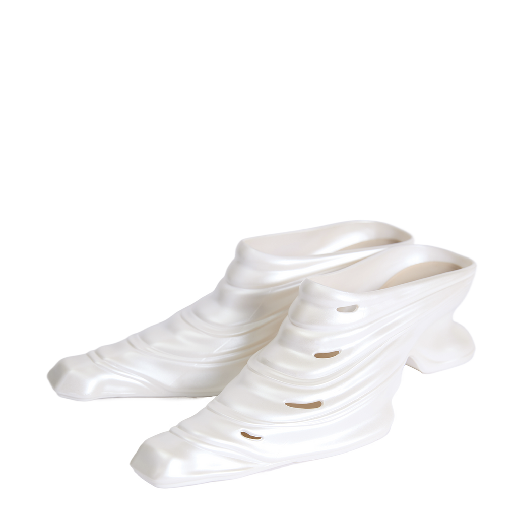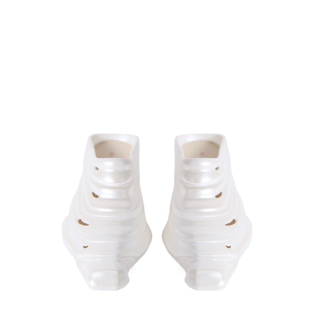 "MAGMA." Inspired by the transformative process of underwater molten slurry, we've chiseled its form into solid shapes, capturing its dynamic essence. To achieve the desired smoothness and completeness, we've ventured beyond traditional shoemaking, embracing experimentation. MAGMA may not be flawless, but it embodies our spirit of exploration.