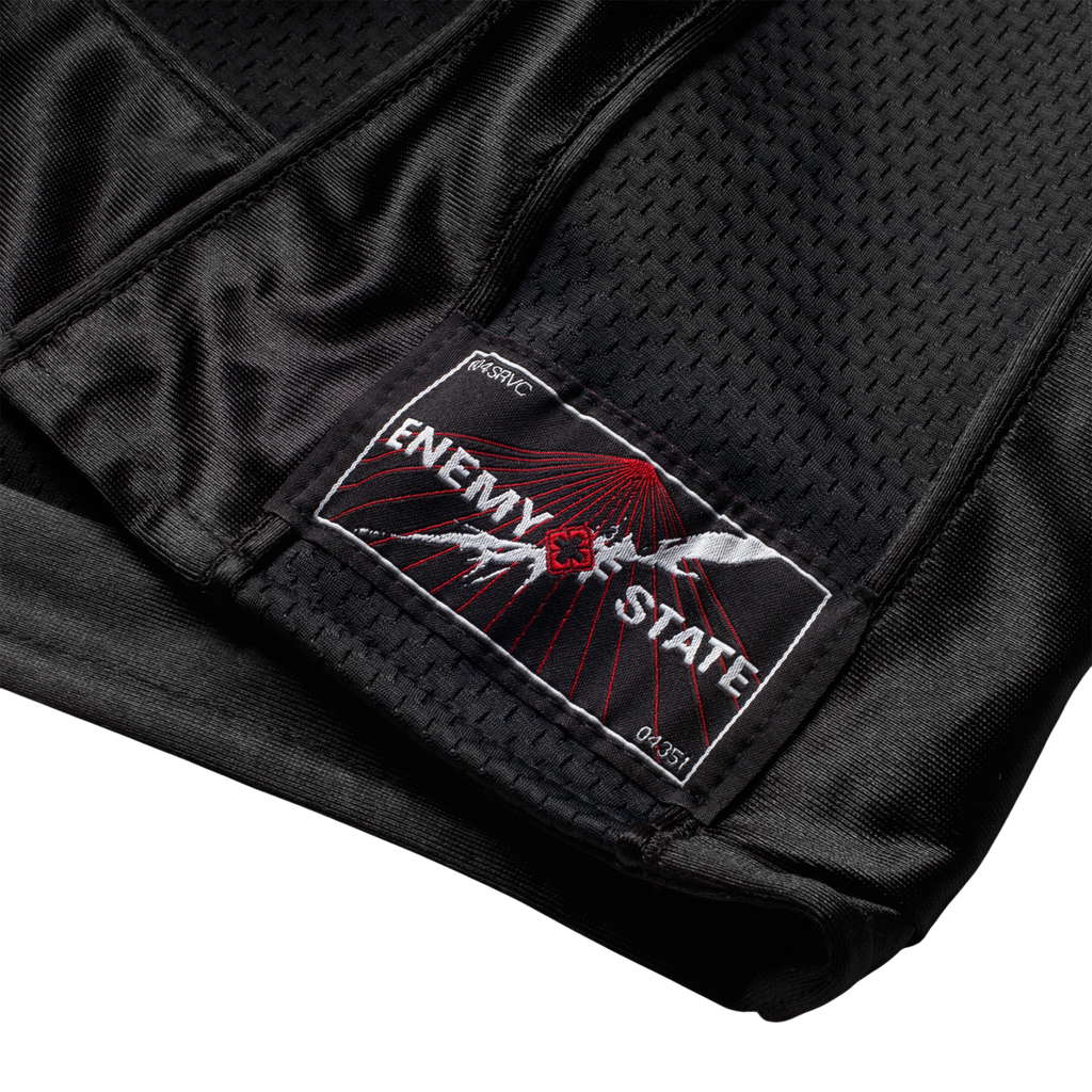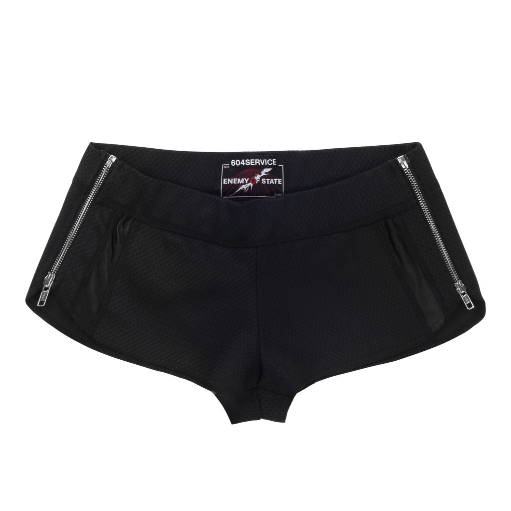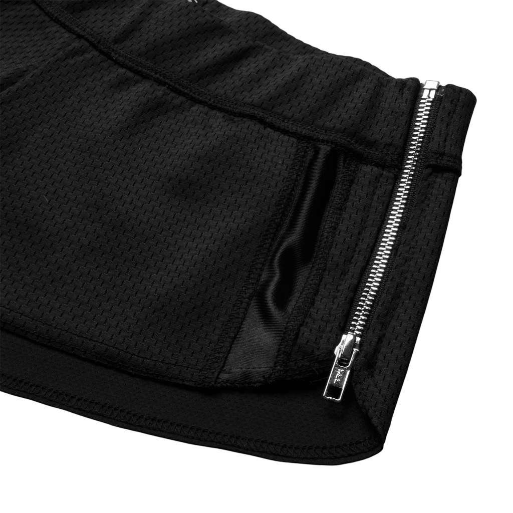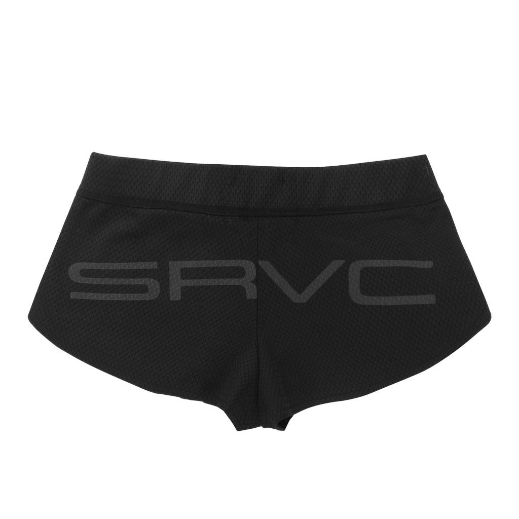 A regular-fit short designed for both style and comfort. Features an inner waist drawstring for adjustable sizing and a side zipper detail for added edge. The back is accented with a reflective 'SRVC' print for visibility and a signature touch.
