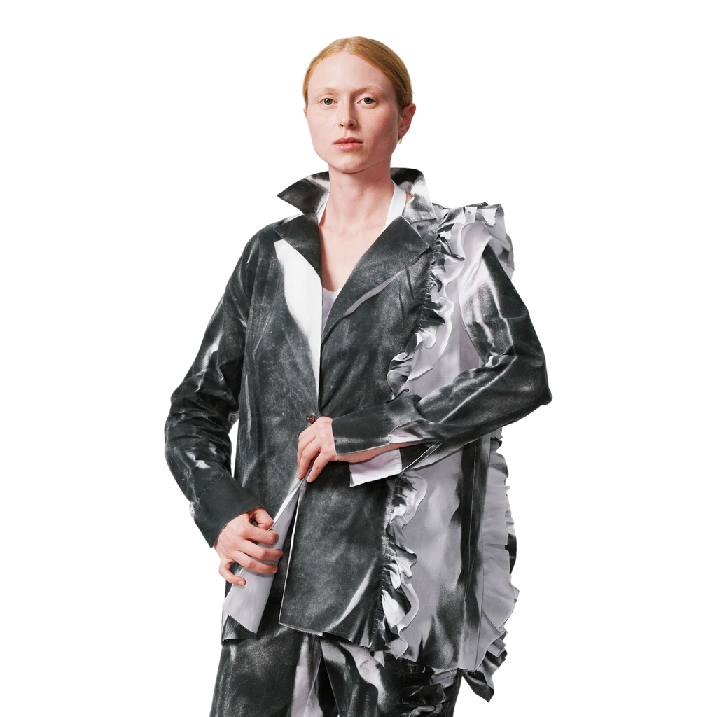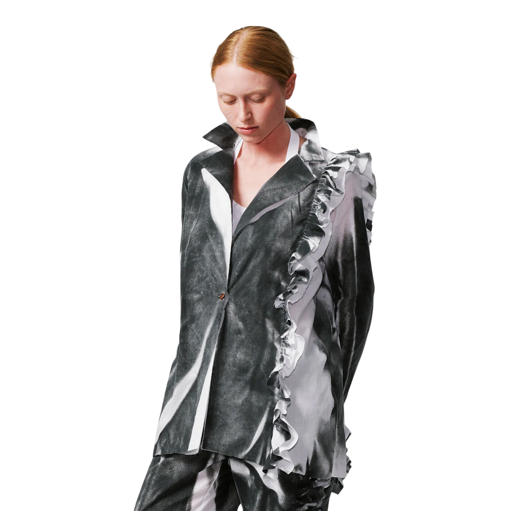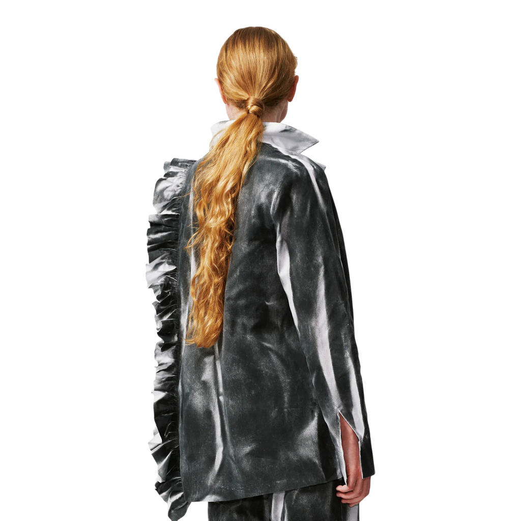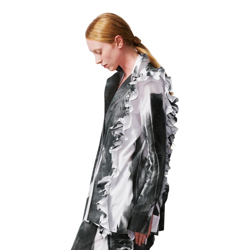 Handcrafted in our Madrid studio, this long-sleeve shirt features gathered ruffle details running along the side and a single-button front closure.