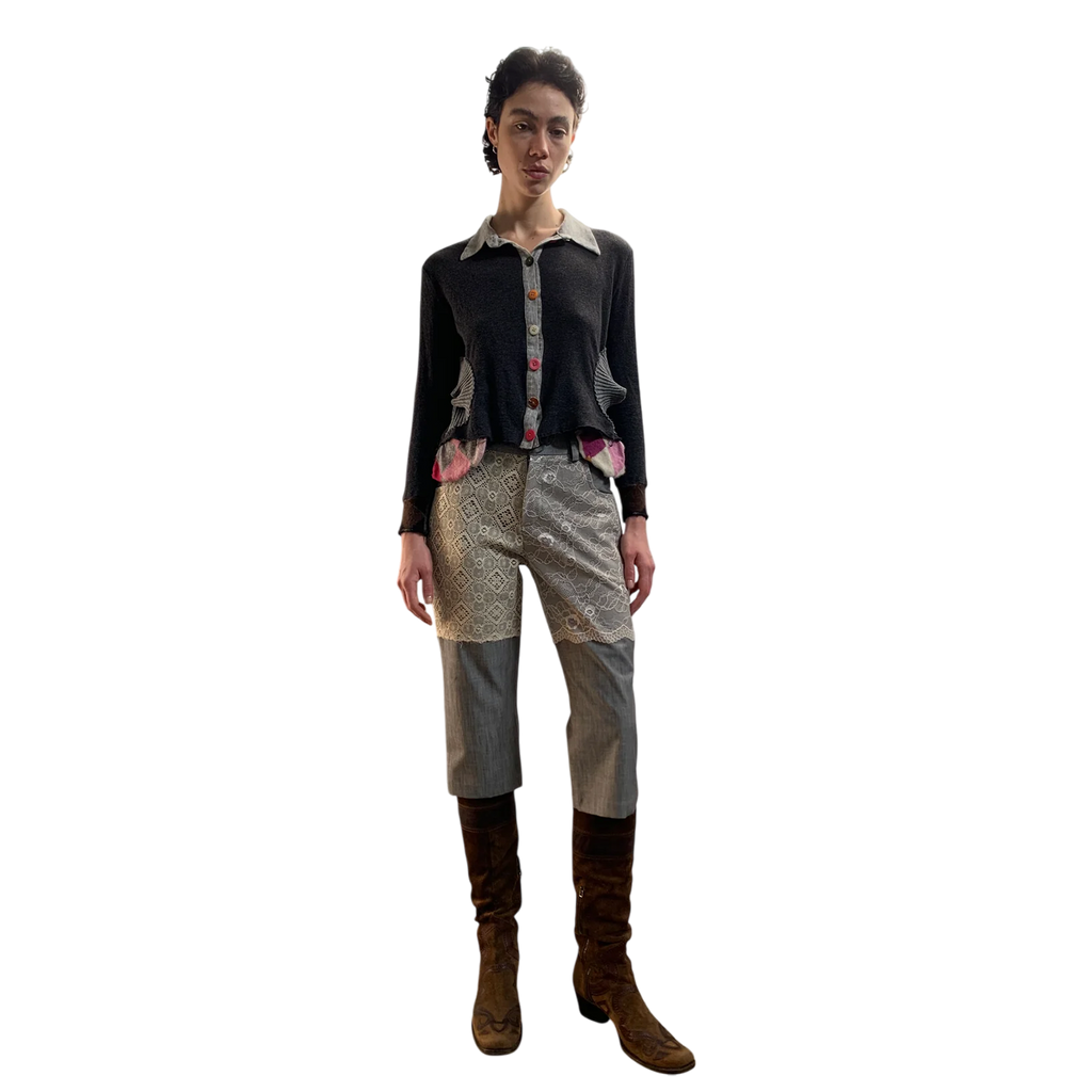 Garbage Core is a Milan-based project by Giuditta Tanzi, founded in 2019. The brand crafts handmade, upcycled garments that celebrate imperfections, transforming flaws into features. Each piece gives old materials a second life while preserving their unique stories.
