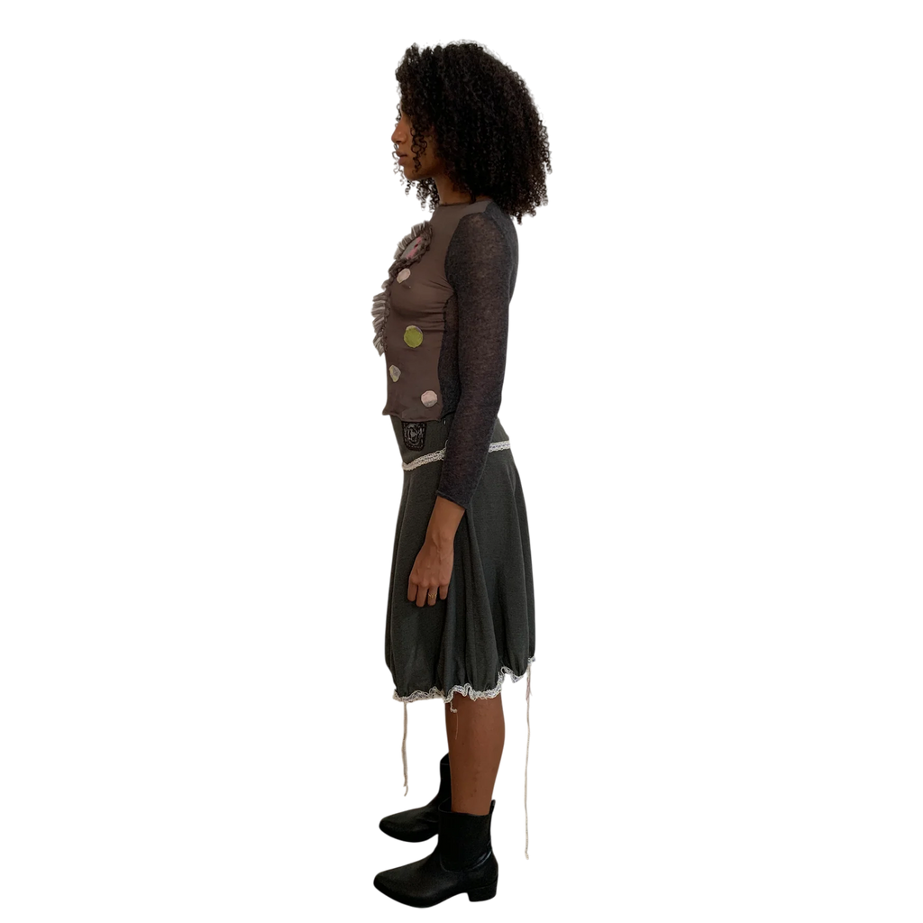 Garbage Core is a Milan-based project by Giuditta Tanzi, founded in 2019. The brand crafts handmade, upcycled garments that celebrate imperfections, transforming flaws into features. Each piece gives old materials a second life while preserving their unique stories.
