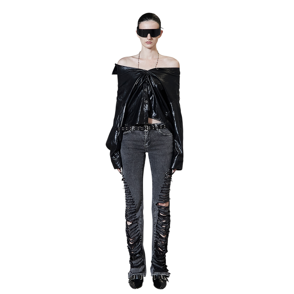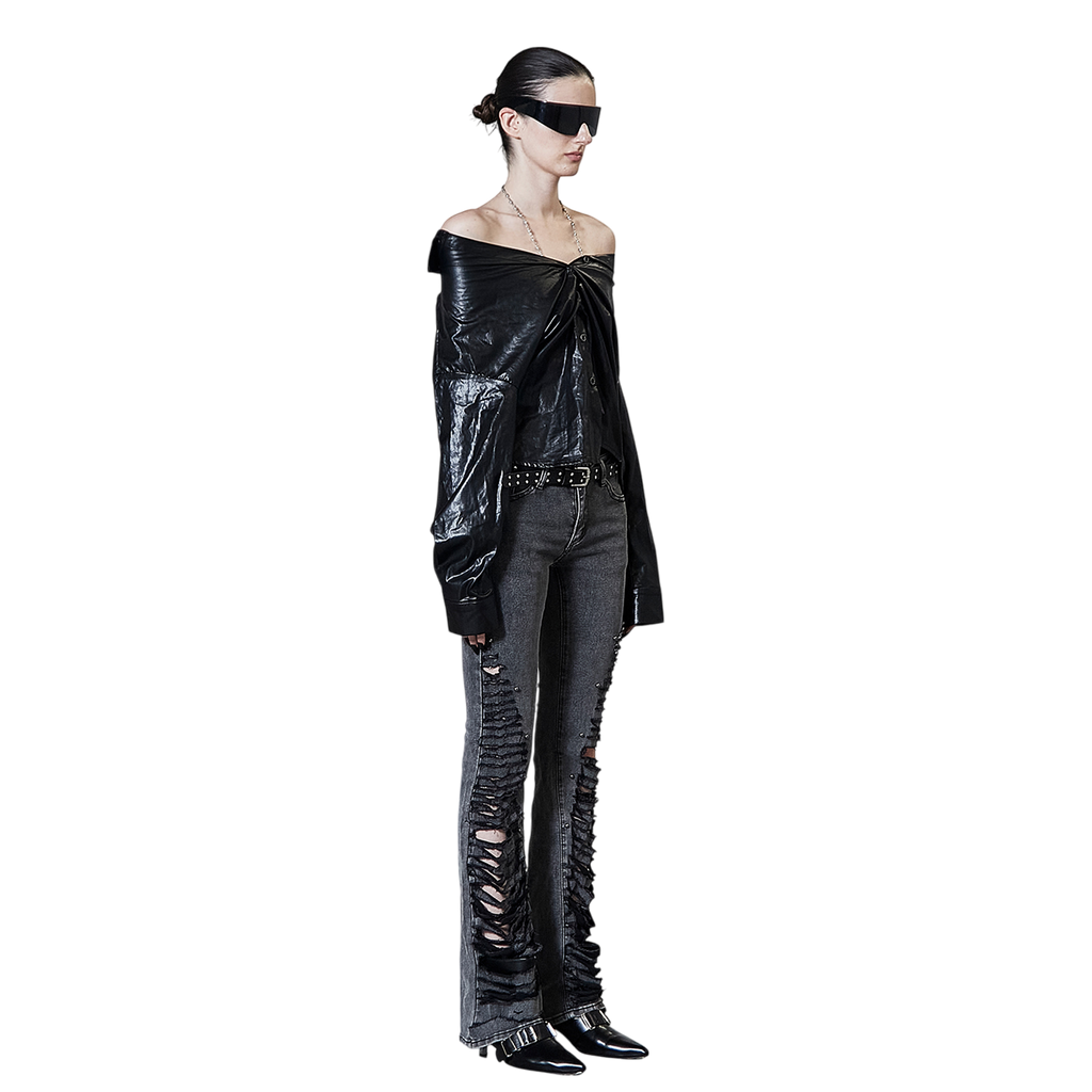 Shoulderless Shirring Leather Shirt