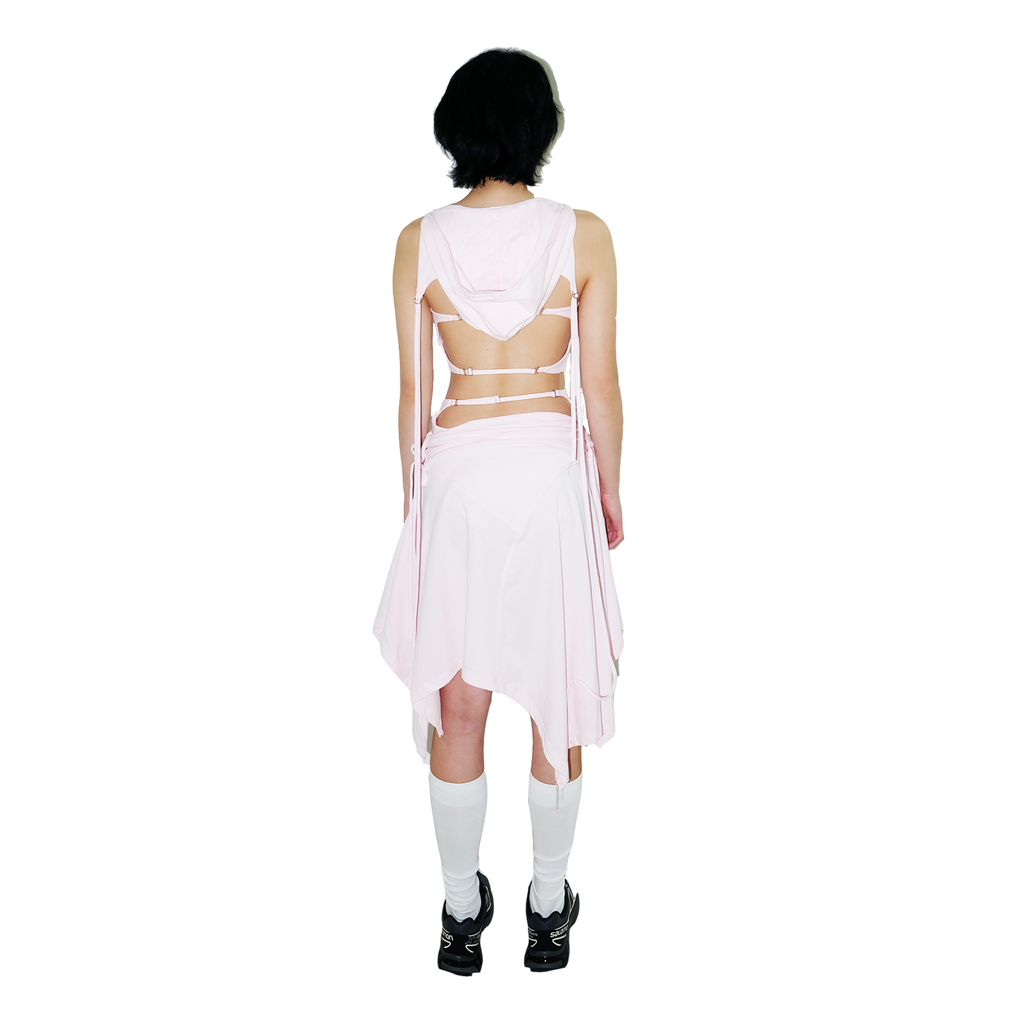 A fitted, scooped neckline bra featuring a detachable hood panel that can be worn independently. The back comes with adjustable double straps for a secure fit.
