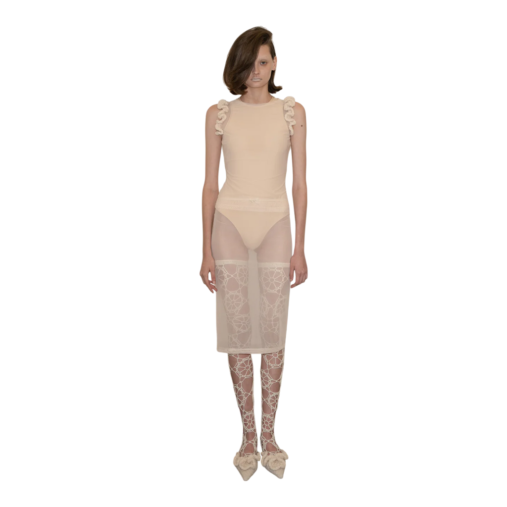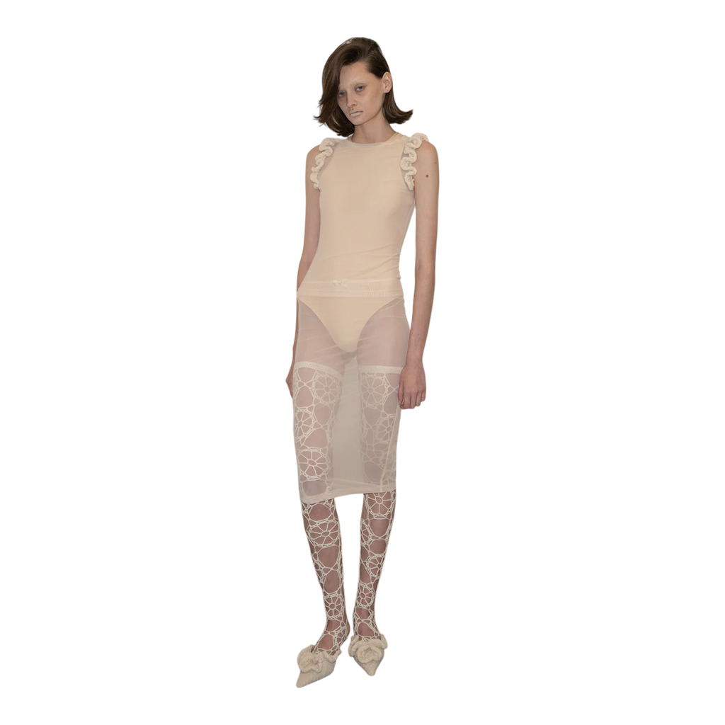 Nastyamasha is a fashion label founded in 2020 by twin sisters Anastasia and Maria Vaniushina. The brand focuses on designing wearable and comfortable garments that prioritize easy movement. Nastyamasha incorporates mesh fabrics and crocheted knitwear to offer a fresh take on conventional, often restrictive clothing. The collections feature structured corsets, textured miniskirts, and strapless tops, combining style with flexibility.