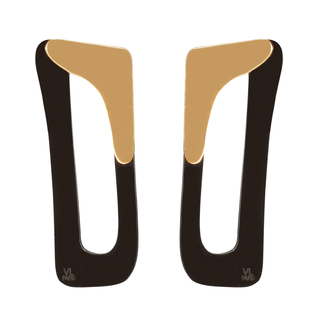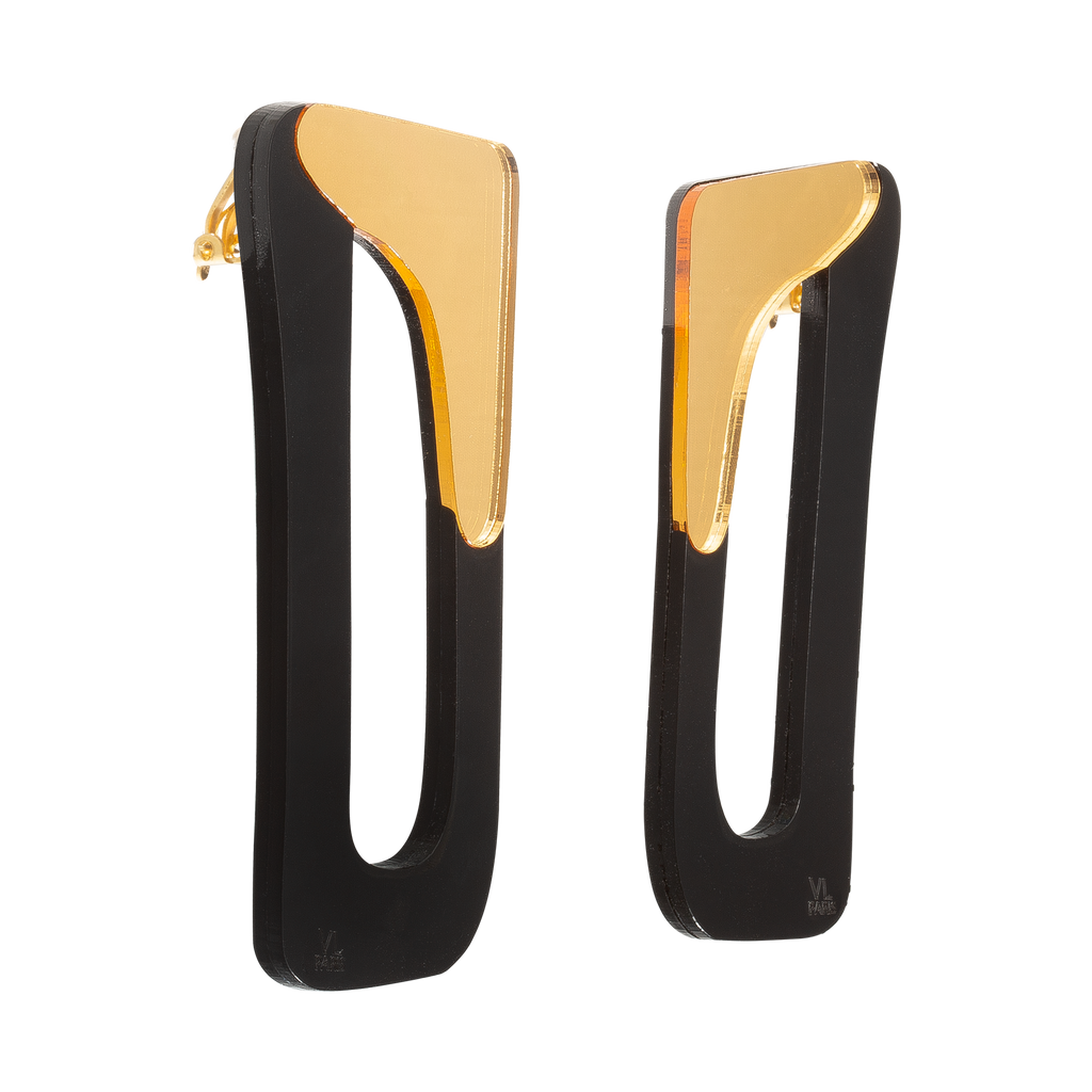 Acetate 906 Clip-On Earrings — Black Gold